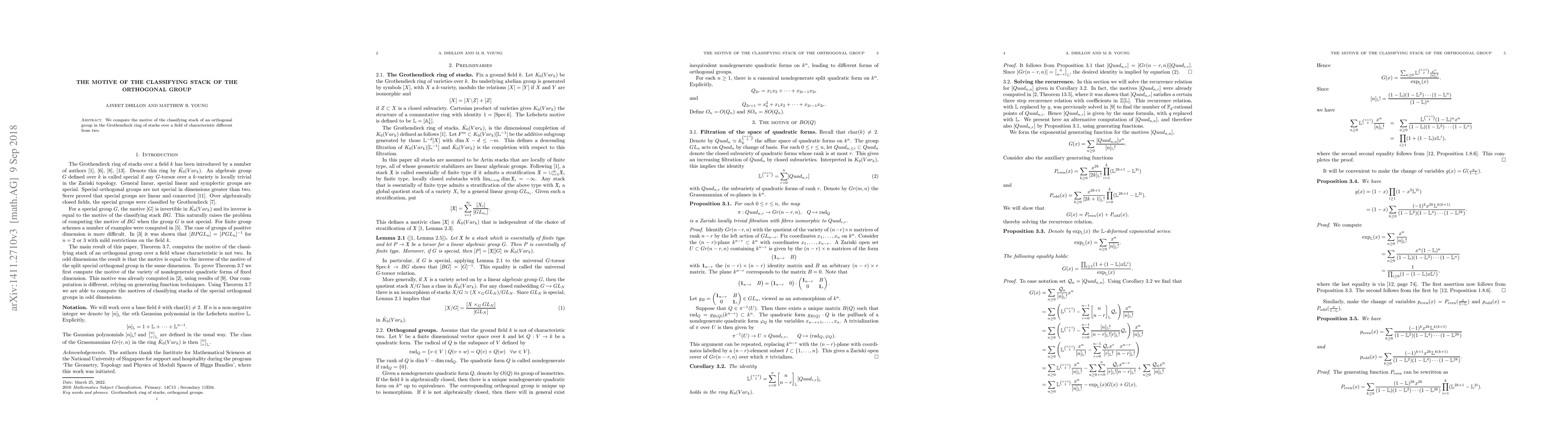 Summary: This paper calculates the motive of the classifying stack for an orthogonal group within the Grothendieck ring of stacks, focusing on fields with characteristic not equal to two. The result provides insights into the algebraic structure of orthogonal groups.