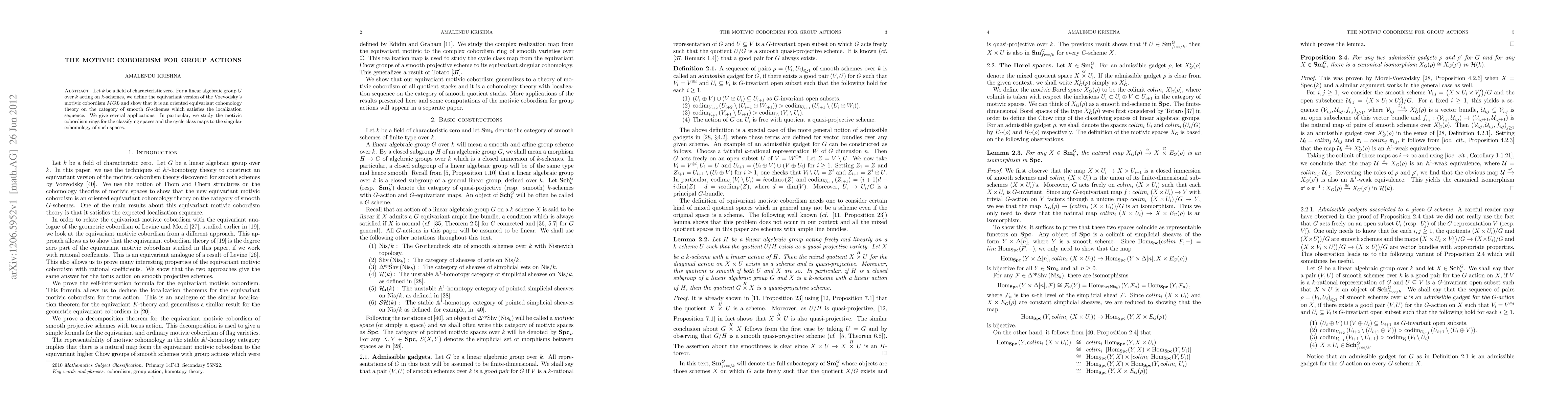 Summary: The paper introduces an equivariant version of Voevodsky's motivic cobordism $MGL$ for linear algebraic groups, demonstrating it as an oriented cohomology theory with a localization sequence. It applies this theory to study cobordism rings of classifying spaces and cycle class maps, extending the concept to smooth quotient stacks.