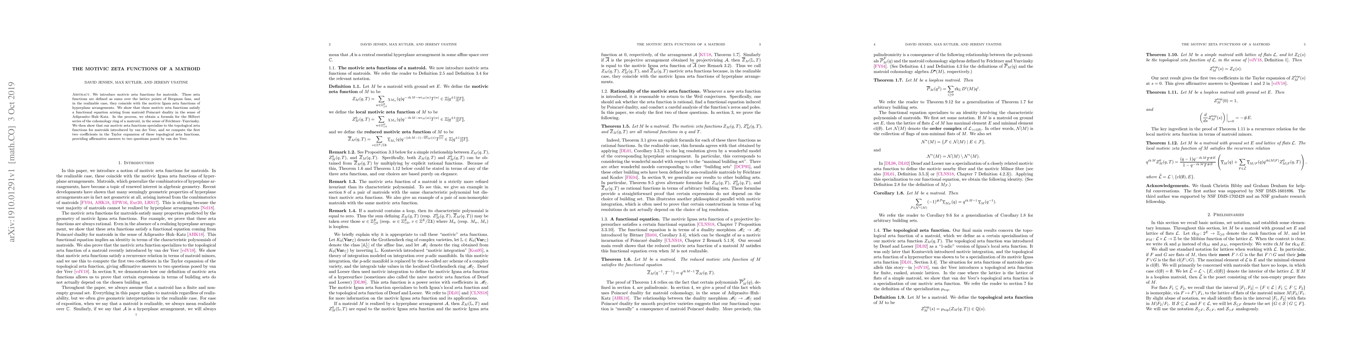 This paper introduces motivic zeta functions for matroids, defined via sums over lattice points, and shows they satisfy a functional equation from matroid Poincaré duality. It also provides a formula for the cohomology ring's Hilbert series and computes the initial coefficients of the topological zeta functions, answering two questions posed by van der Veer.