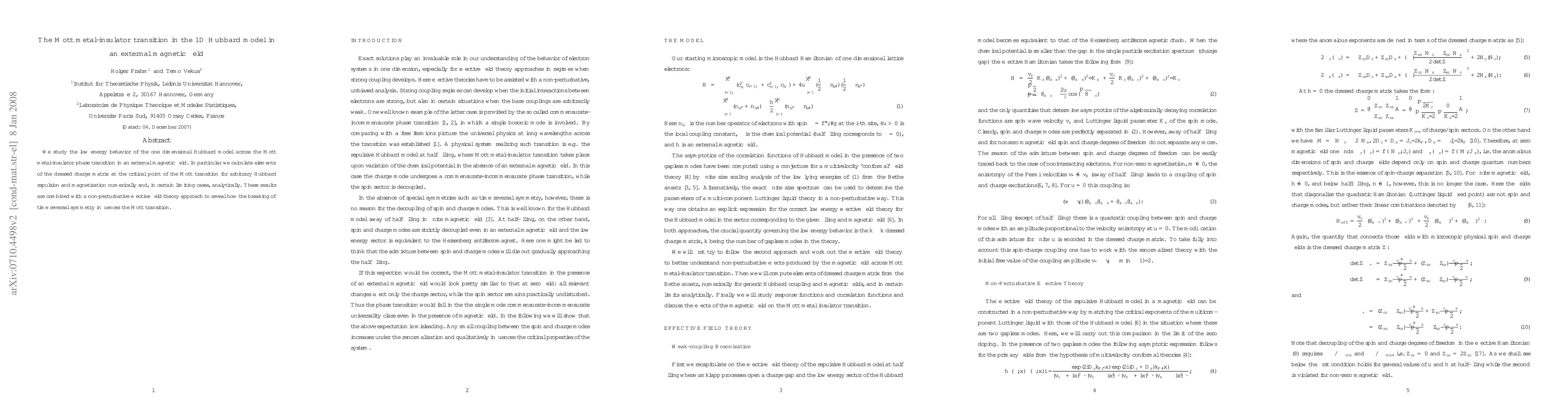 Summary: This study investigates the low-energy behavior of the 1D Hubbard model during the Mott metal-insulator transition under an external magnetic field, revealing how the breaking of time reversal symmetry affects the transition through numerical and analytical calculations of the dressed charge matrix and an effective field theory approach.