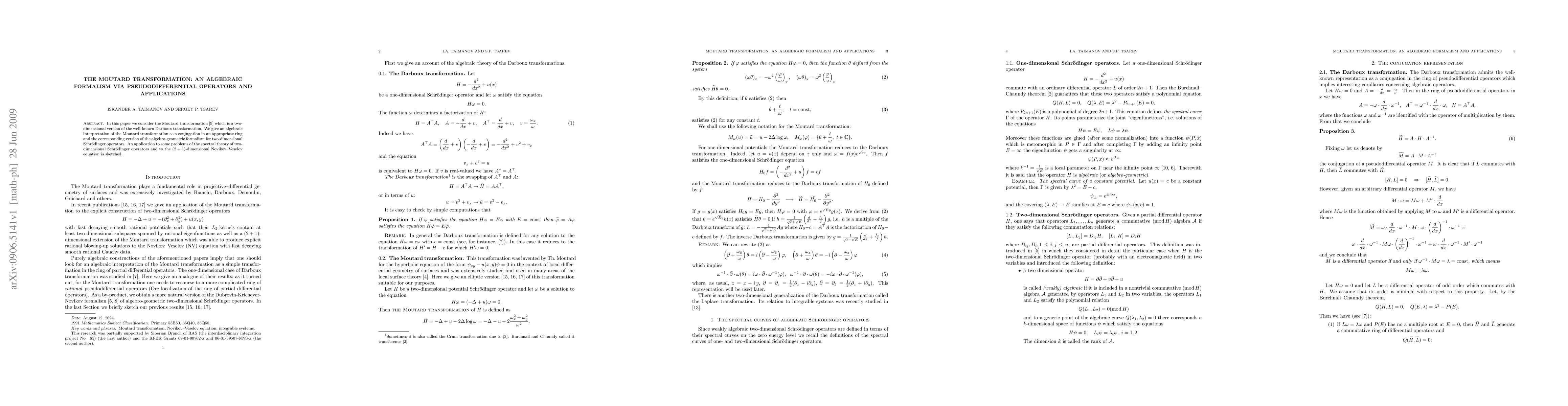 Summary: The paper presents an algebraic formalism for the Moutard transformation using pseudodifferential operators, interpreting it as a conjugation in a specific ring, and applies it to spectral theory and the $(2+1)$-dimensional Novikov--Veselov equation.