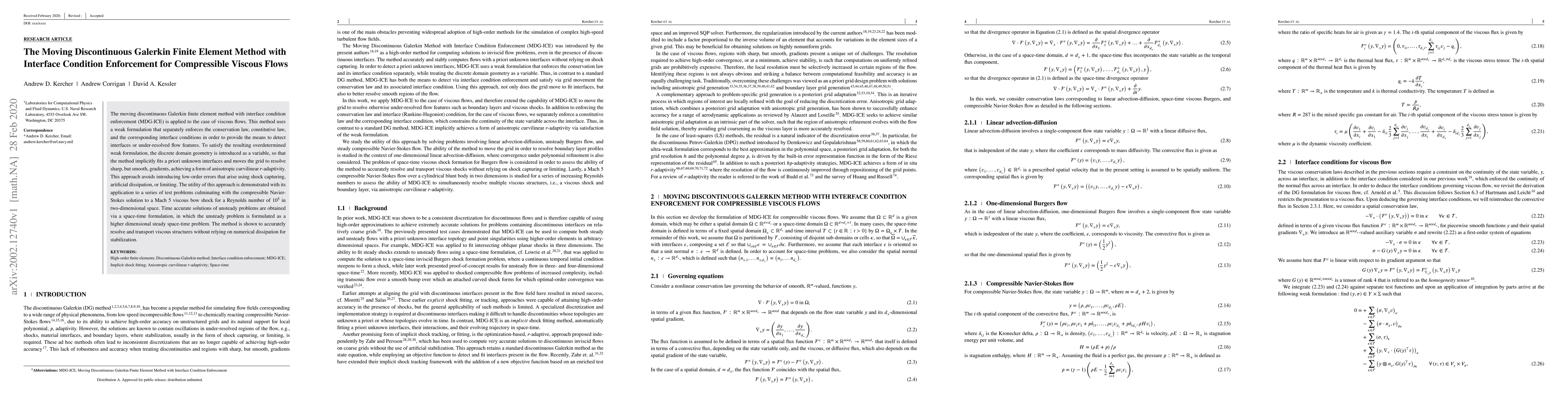 The MDG-ICE method is applied to compressible viscous flows, enforcing conservation and interface conditions without artificial dissipation. It demonstrates accurate resolution of viscous structures and unsteady flows via a space-time formulation.