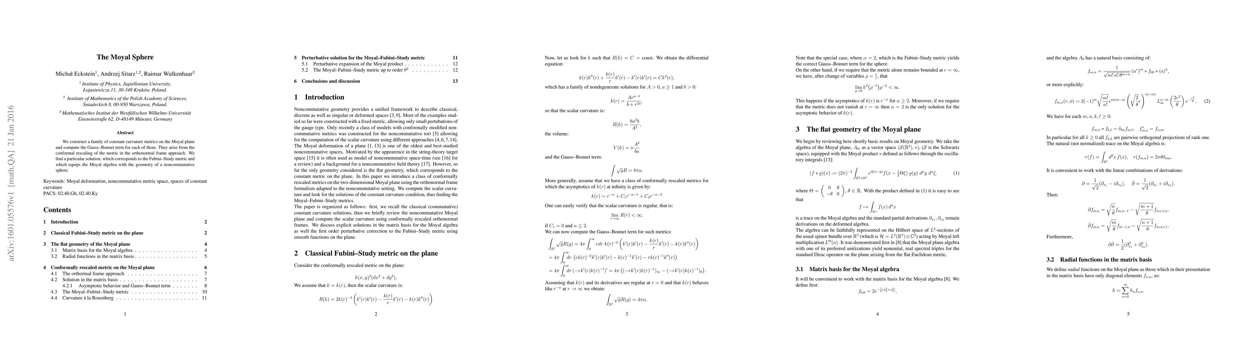 Researchers constructed constant curvature metrics on the Moyal plane, finding a solution that equips it with the geometry of a noncommutative sphere through conformal rescaling.
