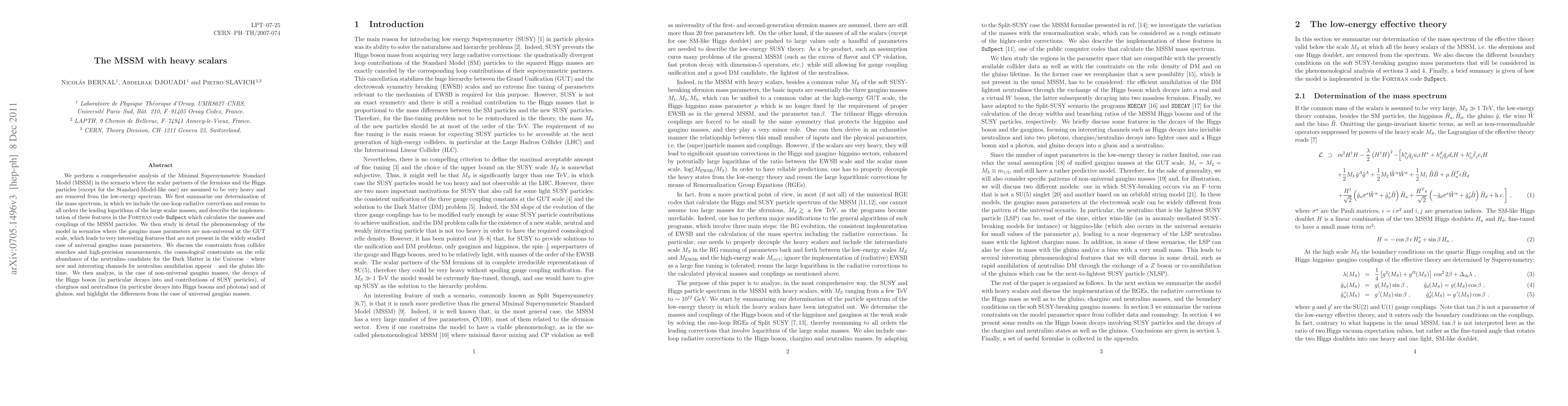 We perform a comprehensive analysis of the Minimal Supersymmetric Standard Model (MSSM) in the scenario where the scalar partners of the fermions and the Higgs particles (except for the Standard-Model-like one) are assumed to be very heavy and are removed from the low-energy spectrum. We first summarize our determination of the mass spectrum, in which we include the one-loop radiative corrections and resum to all orders the leading logarithms of the large scalar masses, and describe the implementation of these features in the FORTRAN code SuSpect which calculates the masses and couplings of the MSSM particles. We then study in detail the phenomenology of the model in scenarios where the gaugino mass parameters are non-universal at the GUT scale, which leads to very interesting features that are not present in the widely studied case of universal gaugino mass parameters. We discuss the constraints from collider searches and high-precision measurements, the cosmological constraints on the relic abundance of the neutralino candidate for the Dark Matter in the Universe - where new and interesting channels for neutralino annihilation appear - and the gluino lifetime. We then analyze, in the case of non-universal gaugino masses, the decays of the Higgs boson (in particular decays into and contributions of SUSY particles), of charginos and neutralinos (in particular decays into Higgs bosons and photons) and of gluinos, and highlight the differences from the case of universal gaugino masses.