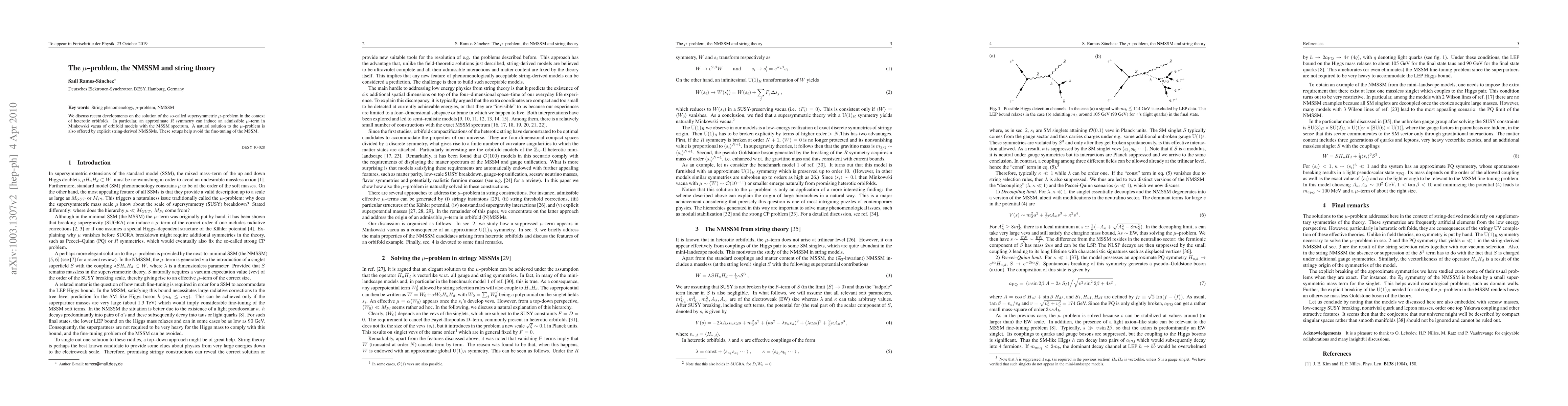 This paper explores solutions to the supersymmetric mu-problem within the Next-to-Minimal Supersymmetric Standard Model (NMSSM), particularly in the context of heterotic orbifolds and string theory. It proposes that an approximate R symmetry can generate a viable mu-term, while string-derived NMSSMs provide a natural resolution without requiring fine-tuning.