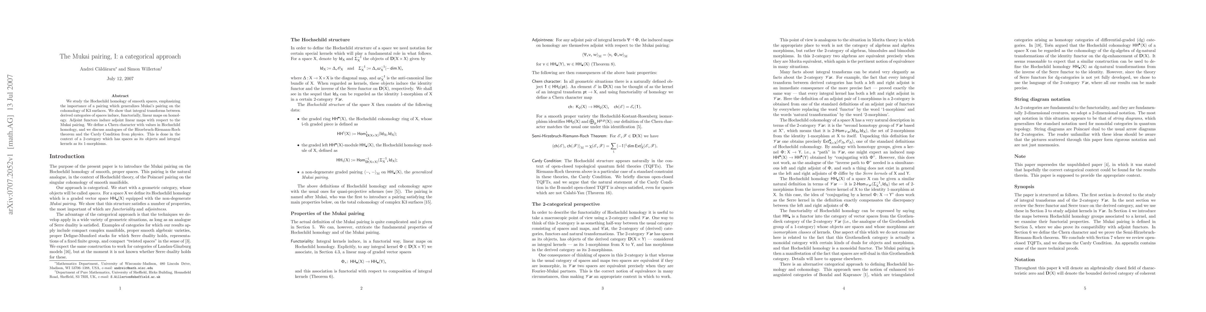 The paper explores the Hochschild homology of smooth spaces through a categorical approach, emphasizing a generalized Mukai pairing. It establishes how integral transforms induce functorially adjoint linear maps with respect to this pairing, and discusses analogues of the Hirzebruch-Riemann-Roch theorem within a 2-categorical framework.