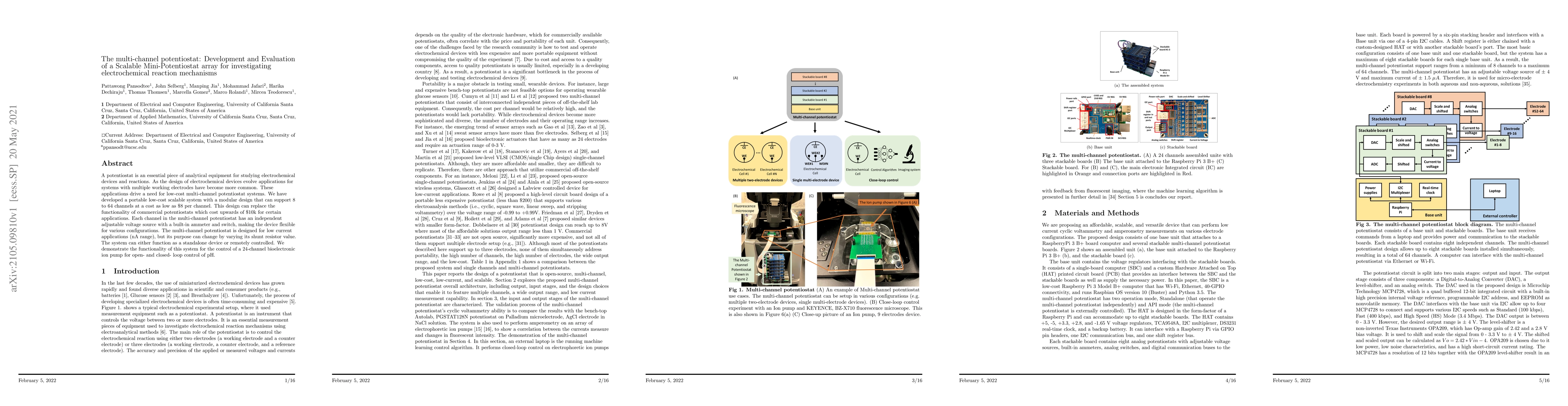 A potentiostat is an essential piece of analytical equipment for studying electrochemical devices and reactions. As the design of electrochemical devices evolve applications for systems with multiple working electrodes have become more common. These applications drive a need for low-cost multi-channel potentiostat systems. We have developed a portable low-cost scalable system with a modular design that can support 8 to 64 channels at a cost as low as \$8 per channel. This design can replace the functionality of commercial potentiostats which cost upwards of \$10k for certain applications. Each channel in the multi-channel potentiostat has an independent adjustable voltage source with a built-in ammeter and switch, making the device flexible for various configurations. The multi-channel potentiostat is designed for low current applications (nA range), but its purpose can change by varying its shunt resistor value. The system can either function as a standalone device or remotely controlled. We demonstrate the functionality of this system for the control of a 24-channel bioelectronic ion pump for open- and closed- loop control of pH.