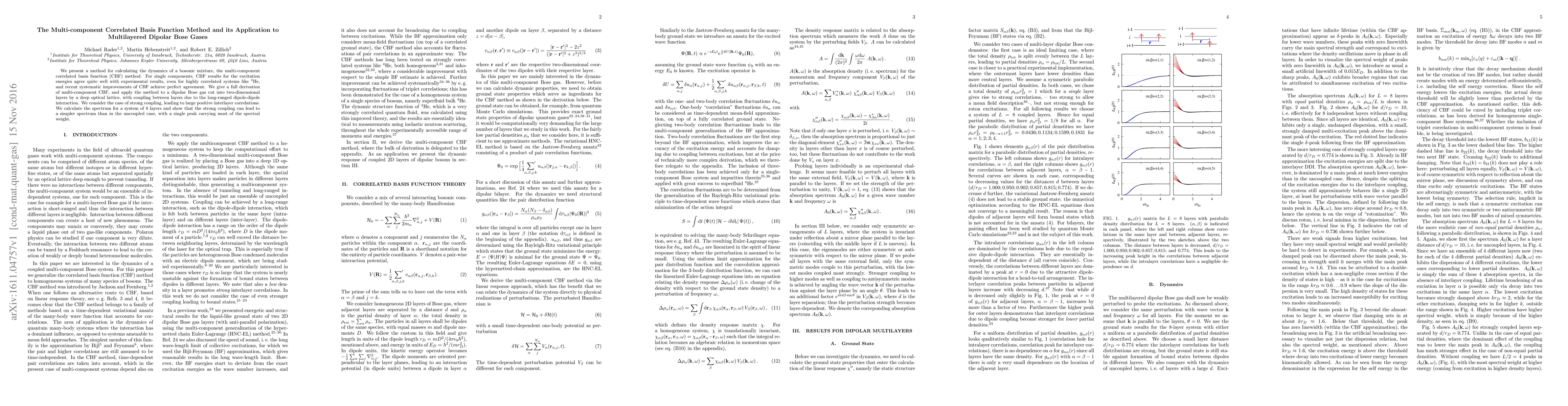 This paper introduces a multi-component correlated basis function (CBF) method for calculating the dynamics of bosonic mixtures, demonstrating its effectiveness through agreement with experimental results for systems like $^4$He. The method is applied to multilayered dipolar Bose gases, revealing that strong interlayer coupling can simplify the spectral structure, resulting in a single dominant peak.
