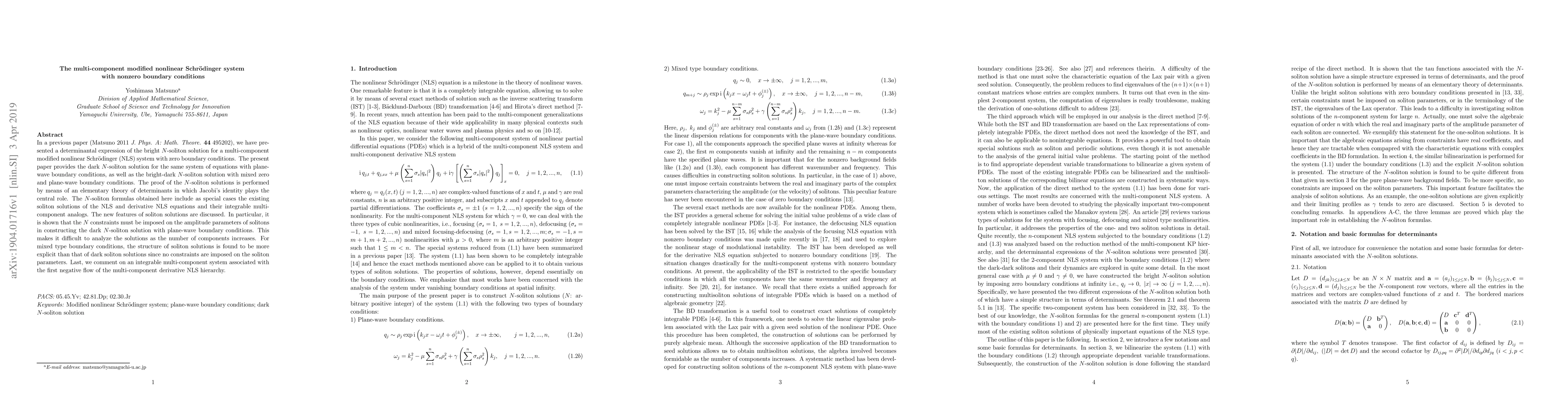 In a previous paper (Matsuno 2011 {\it J. Phys. A: Math. Theore.} {\bf 44} 495202), we have presented a determinantal expression of the bright $N$-soliton solution for a multi-component modified nonlinear Schr\"odinger (NLS) system with zero boundary conditions. The present paper provides the dark $N$-soliton solution for the same system of equations with plane-wave boundary conditions, as well as the bright-dark $N$-soliton solution with mixed zero and plane-wave boundary conditions. The proof of the $N$-soliton solutions is performed by means of an elementary theory of determinants in which acobi's identity plays the central role. The $N$-soliton formulas obtained here include as special cases the existing soliton solutions of the NLS and derivative NLS equations and their integrable multi-omponent analogs. The new features of soliton solutions are discussed. In particular, it is shown that the $N$ constraints must be imposed on the amplitude parameters of solitons in constructing the dark $N$-soliton solution with plane-wave boundary conditions. This makes it difficult to analyze the solutions as the number of components increases. For mixed type boundary conditions, the structure of soliton solutions is found to be more explicit than that of dark soliton solutions since no constraints are imposed on the soliton parameters. Last, we comment on an integrable multi-component system associated with the first negative flow of the multi-component derivative NLS hierarchy.