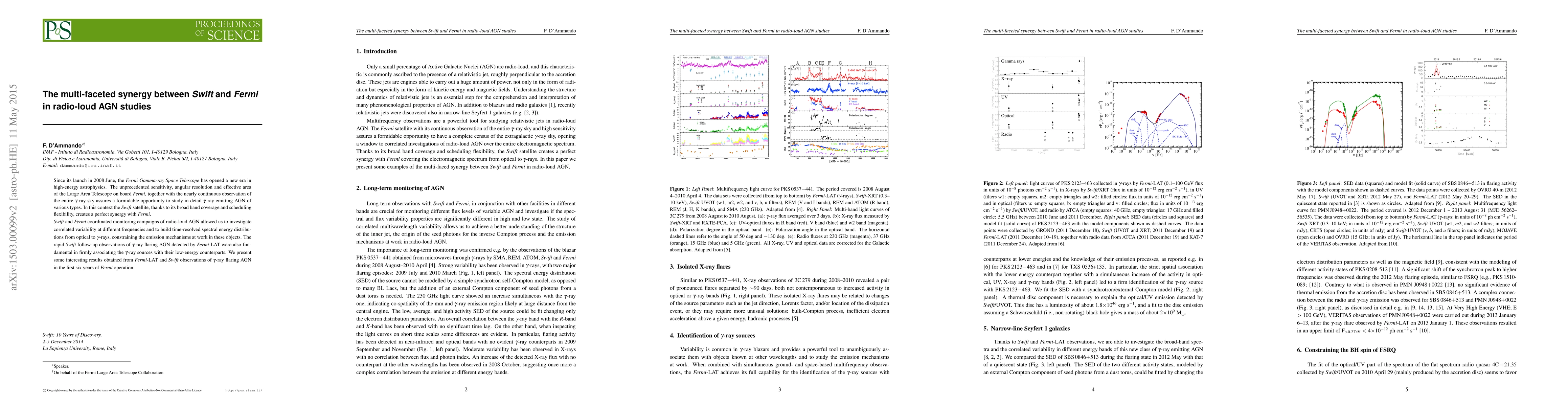 This paper explores the synergy between the Fermi Gamma-ray Space Telescope and the Swift satellite in studying radio-loud active galactic nuclei (AGN). Coordinated observations have enabled detailed investigations of correlated variability and emission mechanisms across multiple frequencies.