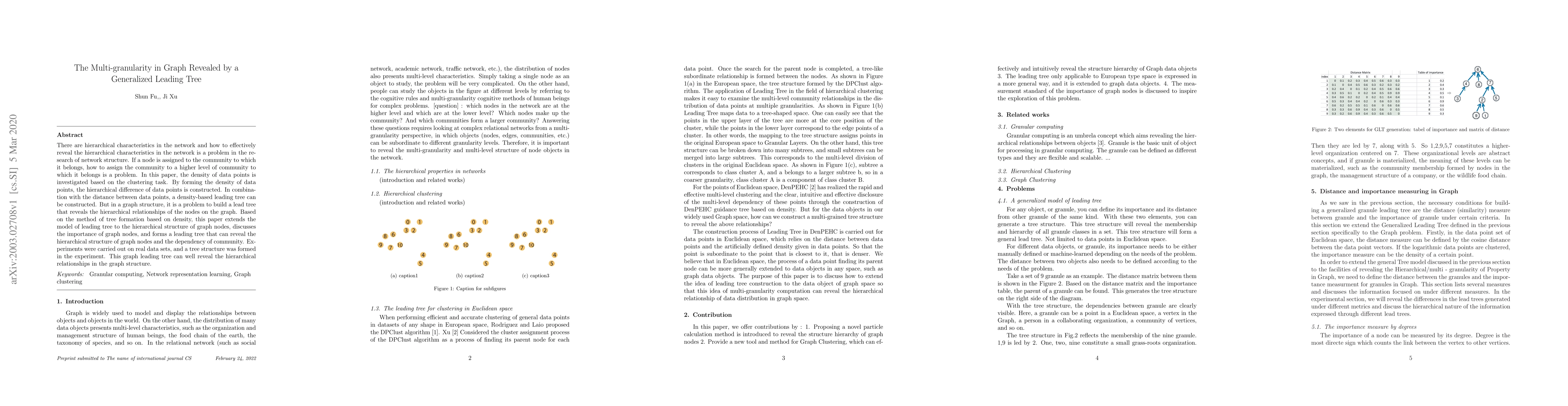 There are hierarchical characteristics in the network and how to effectively reveal the hierarchical characteristics in the network is a problem in the research of network structure. If a node is assigned to the community to which it belongs, how to assign the community to a higher level of community to which it belongs is a problem. In this paper, the density of data points is investigated based on the clustering task. By forming the density of data points, the hierarchical difference of data points is constructed. In combination with the distance between data points, a density-based leading tree can be constructed. But in a graph structure, it is a problem to build a lead tree that reveals the hierarchical relationships of the nodes on the graph. Based on the method of tree formation based on density, this paper extends the model of leading tree to the hierarchical structure of graph nodes, discusses the importance of graph nodes, and forms a leading tree that can reveal the hierarchical structure of graph nodes and the dependency of community. Experiments were carried out on real data sets, and a tree structure was formed in the experiment. This graph leading tree can well reveal the hierarchical relationships in the graph structure.