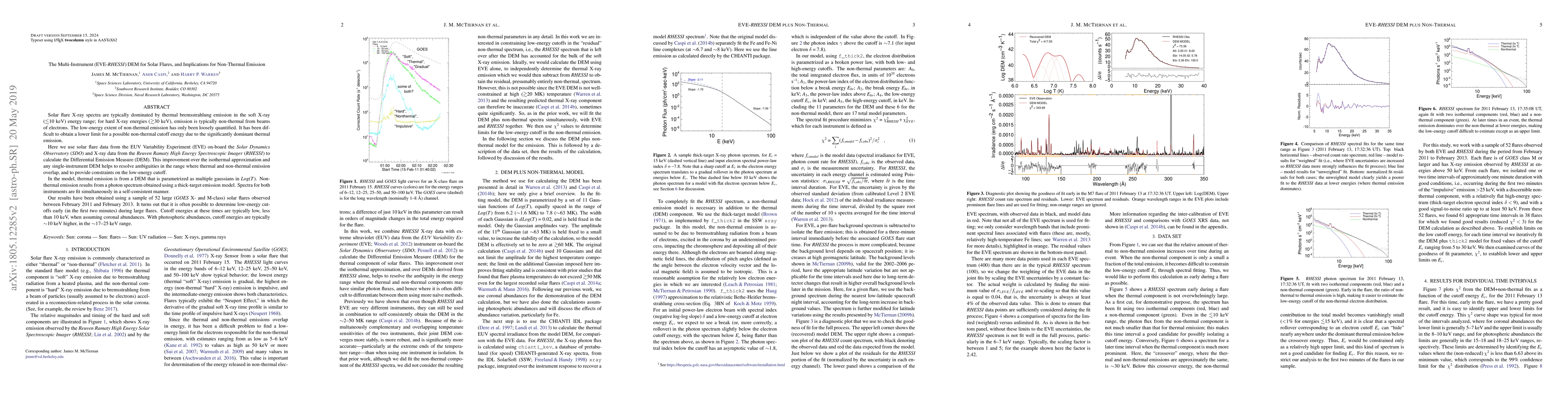 This paper uses data from the EVE on SDO and RHESSI to calculate the Differential Emission Measure (DEM) for solar flares, resolving ambiguities in thermal and non-thermal emission overlap. The study finds low-energy cutoffs for non-thermal emission typically below 10 keV, often determined within the first two minutes of large flares.