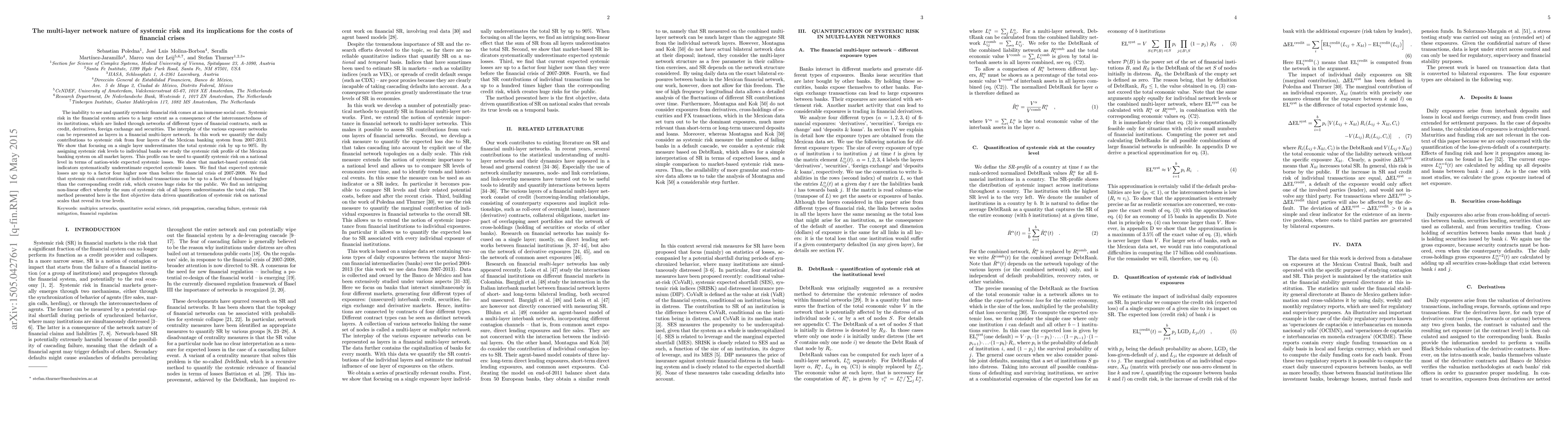 This paper examines the multi-layer network nature of systemic risk in the Mexican banking system from 2007-2013, revealing that focusing on a single layer underestimates total systemic risk by up to 90%. It finds expected systemic losses are now four times higher than pre-2007-2008 levels, highlighting the significant underestimation of systemic risk by market-based indicators.