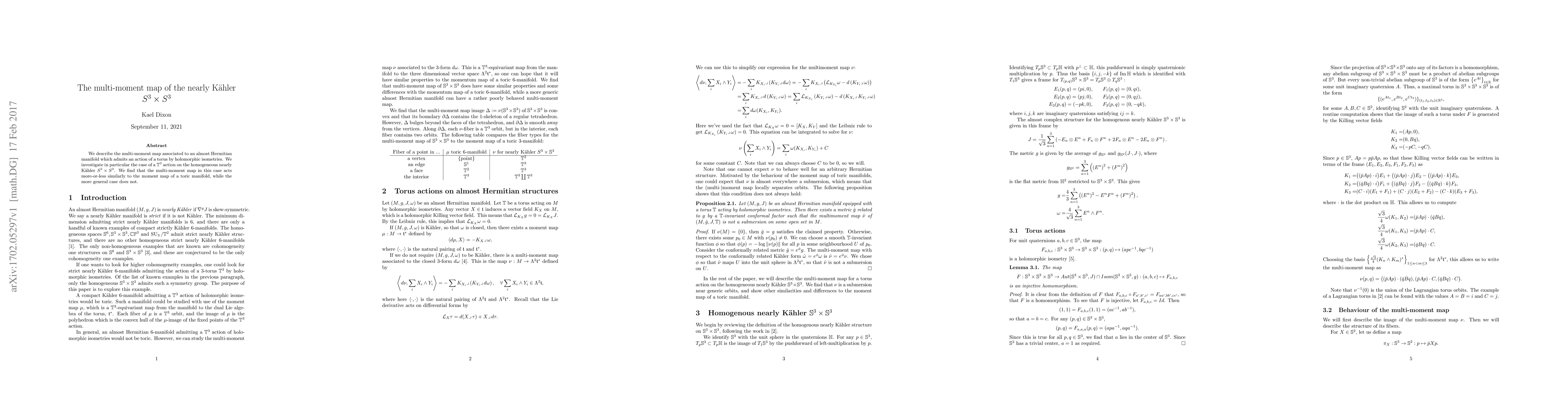 We describe the multi-moment map associated to an almost Hermitian manifold which admits an action of a torus by holomorphic isometries. We investigate in particular the case of a $\mathbb T^3$ action on the homogeneous nearly K\"ahler $ S^3\times S^3$. We find that the multi-moment map in this case acts more-or-less similarly to the moment map of a toric manifold, while the more general case does not.