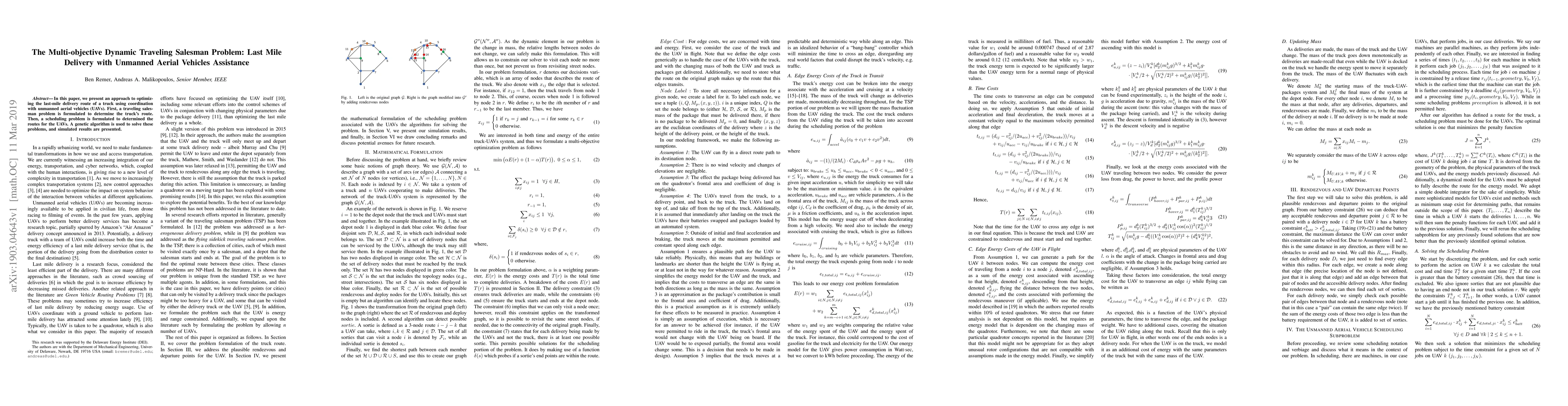 This paper optimizes last-mile delivery routes for trucks by coordinating with unmanned aerial vehicles (UAVs) using a genetic algorithm. It formulates a traveling salesman problem for truck routes and a scheduling problem for UAVs, presenting simulated results.