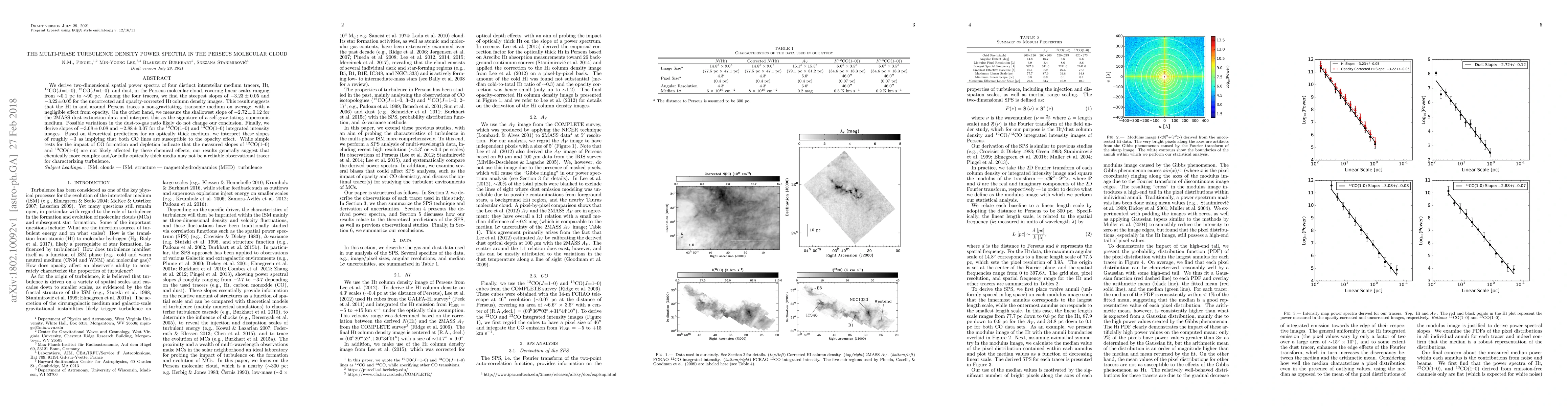 This paper analyzes the power spectra of four interstellar medium tracers in the Perseus molecular cloud, finding steep slopes for HI and CO lines indicative of a non-gravitating medium, while the shallow slope for dust data suggests a self-gravitating, supersonic medium. The study concludes that complex chemical processes may affect the reliability of CO lines as tracers for turbulence.