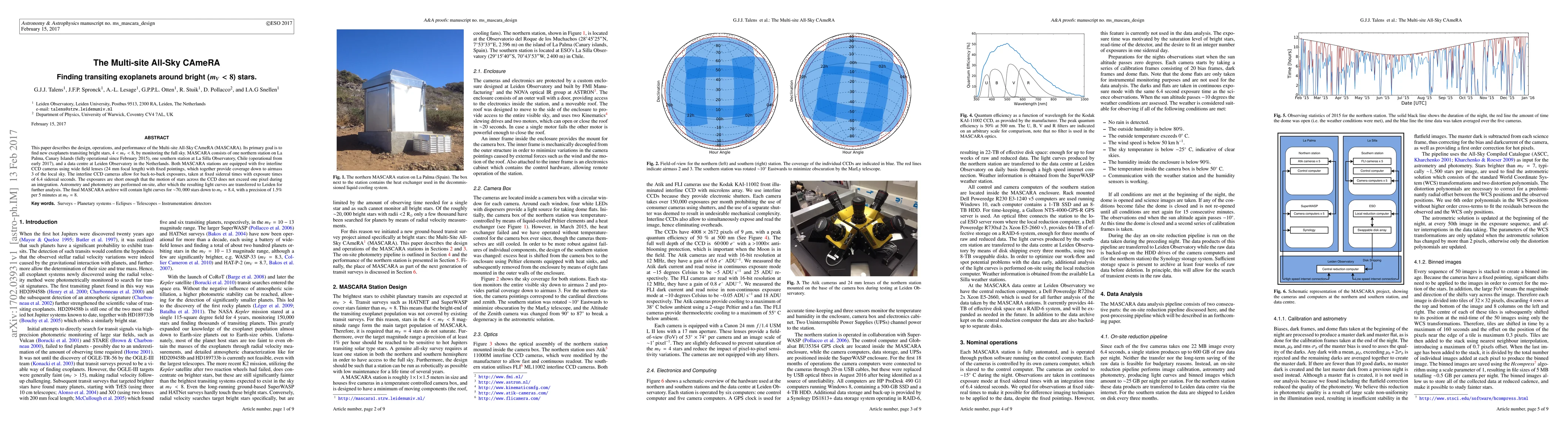 The MASCARA project presents a system of telescopes on La Palma and La Silla, designed to discover exoplanets around bright stars by continuously monitoring the entire sky. Utilizing interline CCD cameras with wide field lenses, MASCARA captures back-to-back images at fixed sidereal times. On-site, astrometry and photometry are performed, with light curves then analyzed at the data center in Leiden. The initiative aims to generate a comprehensive archive of light curves for ~70,000 stars up to magnitude 8.4, with a precision of 1.5% every 5 minutes for $m_V=8$.