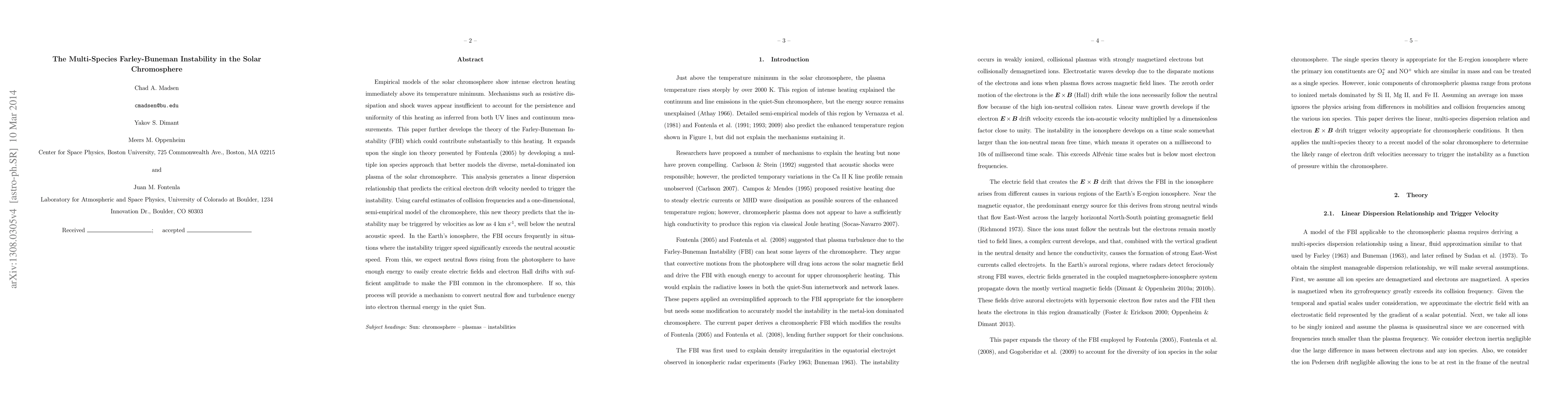 This paper develops a multi-species theory of the Farley-Buneman Instability to explain intense electron heating in the solar chromosphere, suggesting that the instability can be triggered by electron drift velocities as low as 4 km s^-1, providing a potential mechanism for converting neutral flow energy into electron thermal energy.