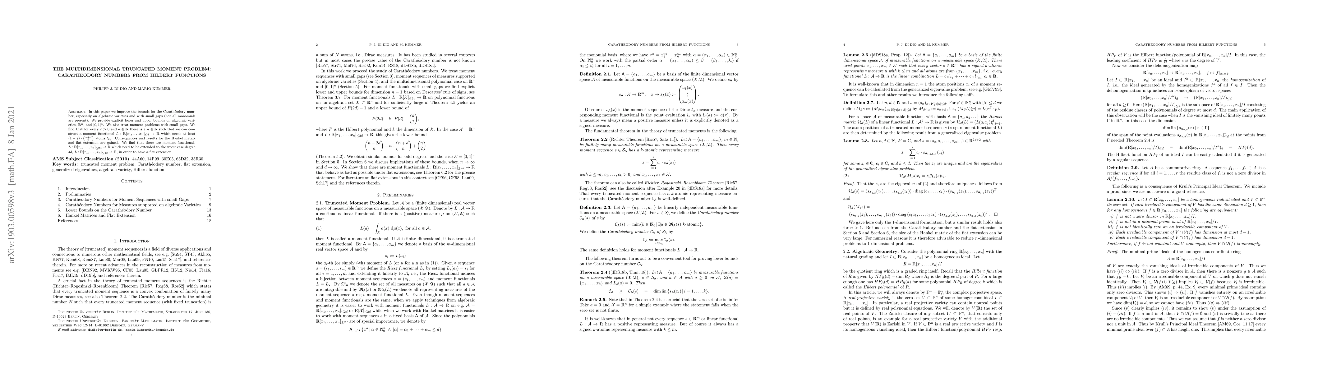 In this paper we improve the bounds for the Carath\'eodory number, especially on algebraic varieties and with small gaps (not all monomials are present). We provide explicit lower and upper bounds on algebraic varieties, $\mathbb{R}^n$, and $[0,1]^n$. We also treat moment problems with small gaps. We find that for every $\varepsilon>0$ and $d\in\mathbb{N}$ there is a $n\in\mathbb{N}$ such that we can construct a moment functional $L:\mathbb{R}[x_1,\dots,x_n]_{\leq d}\rightarrow\mathbb{R}$ which needs at least $(1-\varepsilon)\cdot\left(\begin{smallmatrix} n+d\\ n\end{smallmatrix}\right)$ atoms $l_{x_i}$. Consequences and results for the Hankel matrix and flat extension are gained. We find that there are moment functionals $L:\mathbb{R}[x_1,\dots,x_n]_{\leq 2d}\rightarrow\mathbb{R}$ which need to be extended to the worst case degree $4d$, $\tilde{L}:\mathbb{R}[x_1,\dots,x_n]_{\leq 4d}\rightarrow\mathbb{R}$, in order to have a flat extension.