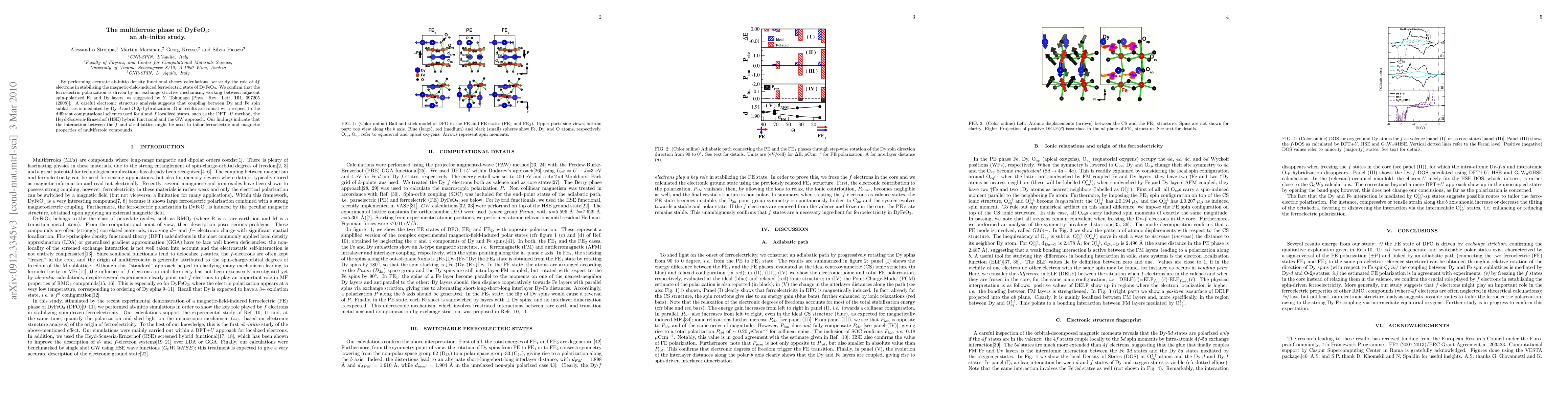 By performing accurate ab-initio density functional theory calculations, we study the role of $4f$ electrons in stabilizing the magnetic-field-induced ferroelectric state of DyFeO$_{3}$. We confirm that the ferroelectric polarization is driven by an exchange-strictive mechanism, working between adjacent spin-polarized Fe and Dy layers, as suggested by Y. Tokunaga [Phys. Rev. Lett, \textbf{101}, 097205 (2008)]. A careful electronic structure analysis suggests that coupling between Dy and Fe spin sublattices is mediated by Dy-$d$ and O-$2p$ hybridization. Our results are robust with respect to the different computational schemes used for $d$ and $f$ localized states, such as the DFT+$U$ method, the Heyd-Scuseria-Ernzerhof (HSE) hybrid functional and the GW approach. Our findings indicate that the interaction between the $f$ and $d$ sublattice might be used to tailor ferroelectric and magnetic properties of multiferroic compounds.