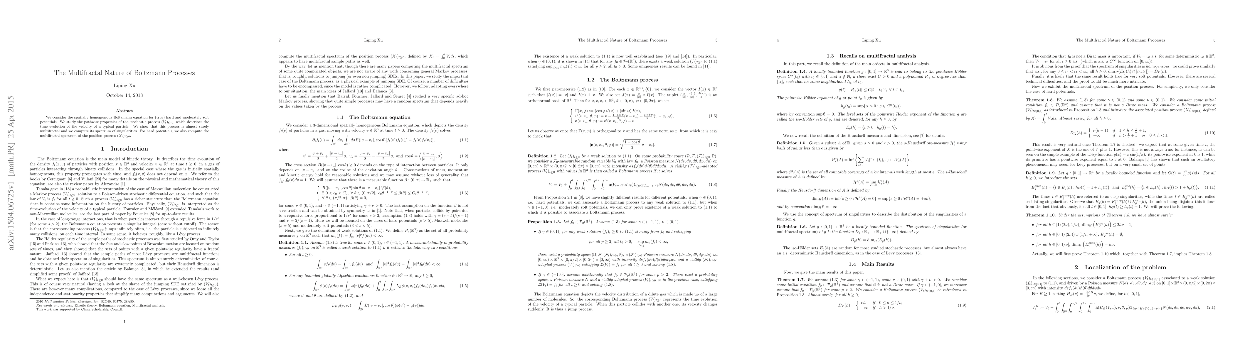 We consider the spatially homogeneous Boltzmann equation for (true) hard and moderately soft potentials. We study the pathwise properties of the stochastic process $(V_t)_{t\geq 0}$, which describes the time evolution of the velocity of a typical particle. We show that this process is almost surely multifractal and we compute its spectrum of singularities. For hard potentials, we also compute the multifractal spectrum of the position process $(X_t)_{t\ge0}$.