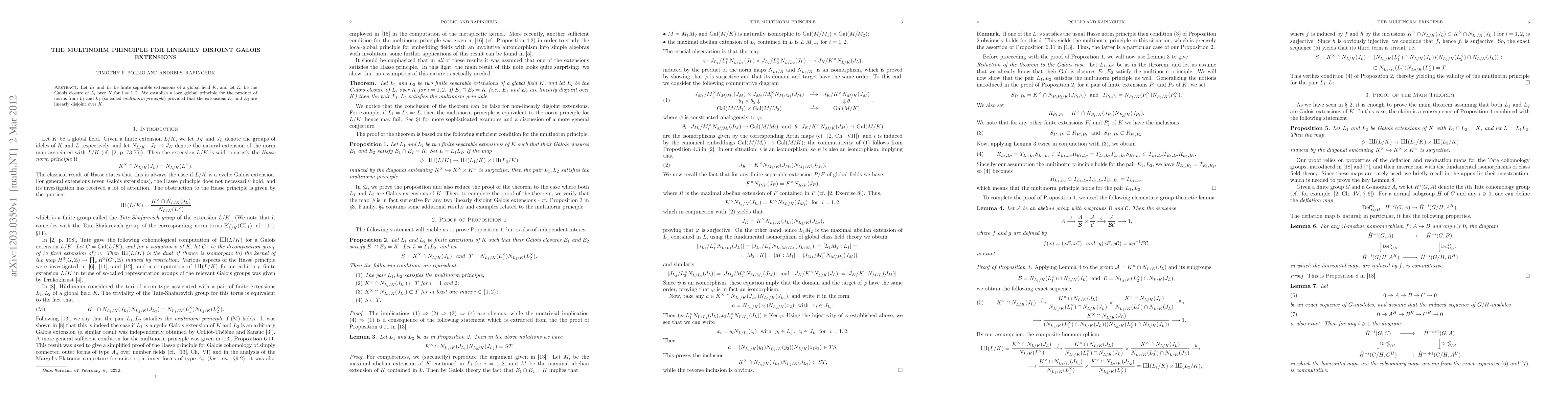 Researchers establish a local-global principle for the product of norms from two linearly disjoint Galois extensions over a global field, enabling a multinorm principle.