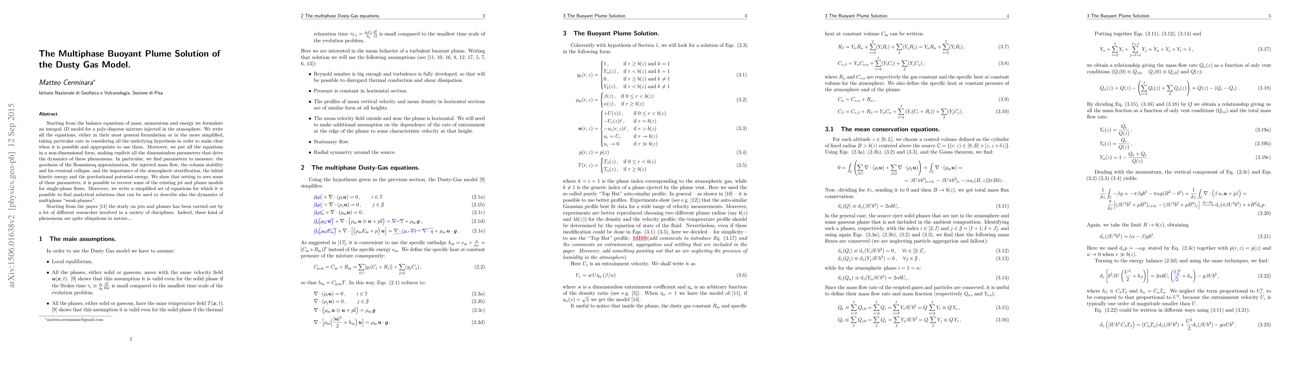This paper develops a 1D model for poly-disperse mixtures injected into the atmosphere, focusing on multiphase buoyant plumes. It recovers existing jet and plume models by setting certain parameters to zero and provides analytical solutions for weak-plumes.