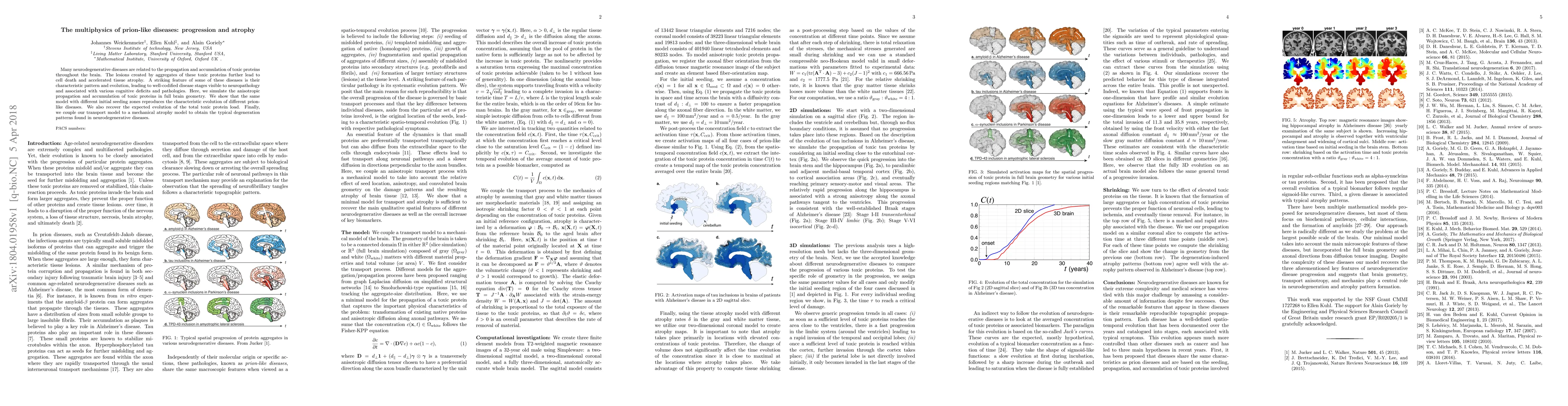 This paper simulates the anisotropic spread and accumulation of toxic proteins in the brain, demonstrating that different initial seeding zones can reproduce the characteristic progression of various prion-like diseases. It also integrates a mechanical atrophy model to capture the typical degeneration patterns seen in neurodegenerative diseases.