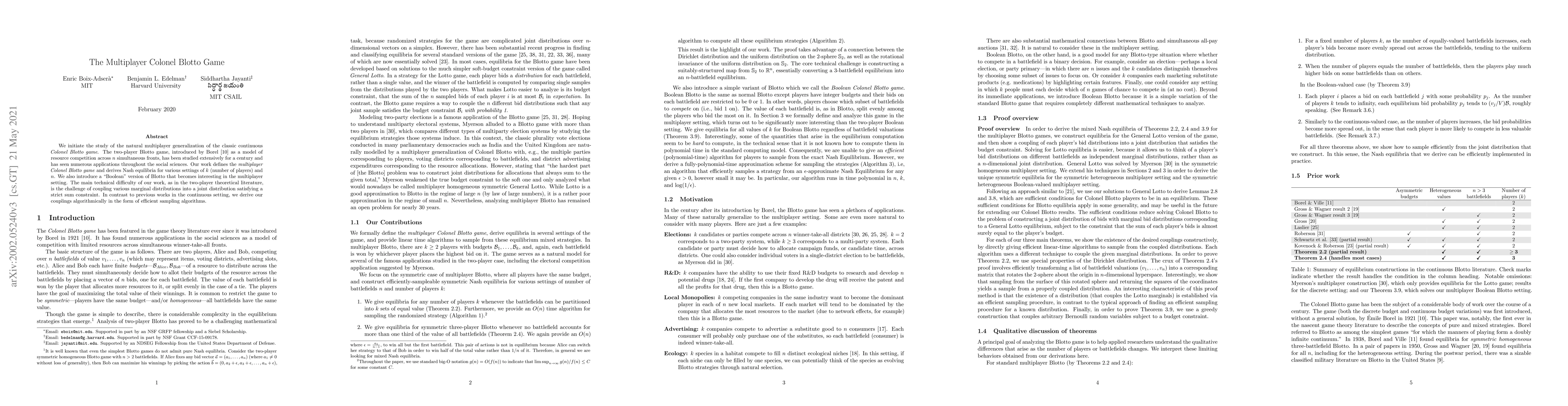 This paper explores the multiplayer extension of the classic continuous Colonel Blotto game, defining Nash equilibria for different numbers of players and fronts, and introducing an algorithmic approach to derive these equilibria through efficient sampling methods. It also presents a "Boolean" variant that gains significance in multiplayer settings.