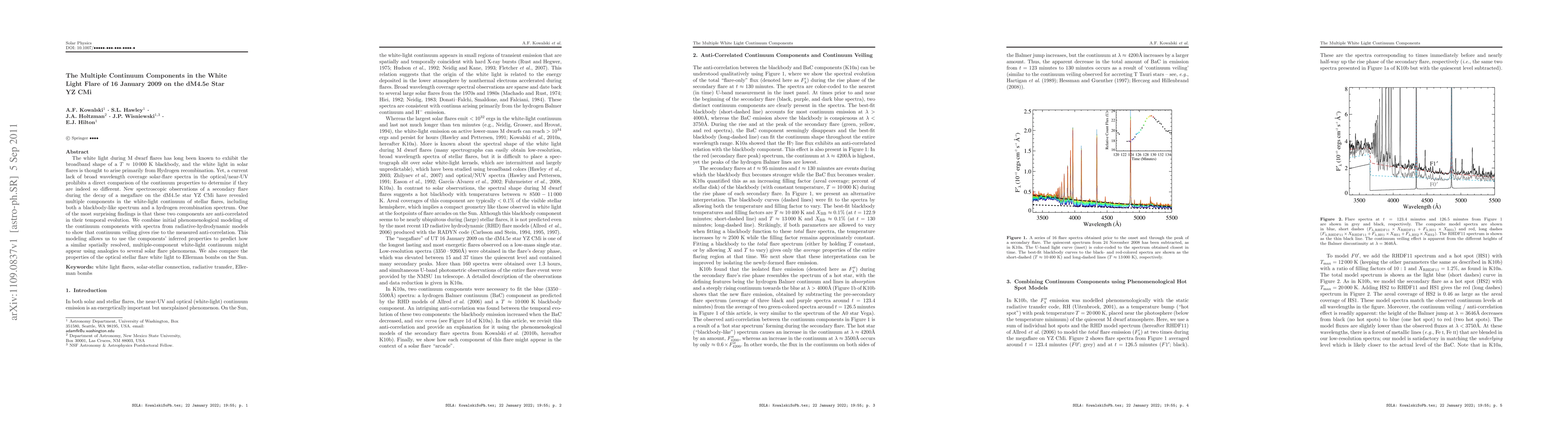 The white light during M dwarf flares has long been known to exhibit the broadband shape of a T~10,000 K blackbody, and the white light in solar flares is thought to arise primarily from Hydrogen recombination. Yet, a current lack of broad wavelength coverage solar-flare spectra in the optical/near-UV prohibits a direct comparison of the continuum properties to determine if they are indeed so different. New spectroscopic observations of a secondary flare during the decay of a megaflare on the dM4.5e star YZ CMi have revealed multiple components in the white-light continuum of stellar flares, including both a blackbody-like spectrum and a hydrogen recombination spectrum. One of the most surprising findings is that these two components are anti-correlated in their temporal evolution. We combine initial phenomenological modeling of the continuum components with spectra from radiative-hydrodynamic models to show that continuum veiling gives rise to the measured anti-correlation. This modeling allows us to use the components' inferred properties to predict how a similar spatially resolved, multiple-component white-light continuum might appear using analogies to several solar flare phenomena. We also compare the properties of the optical stellar flare white light to Ellerman bombs on the Sun.