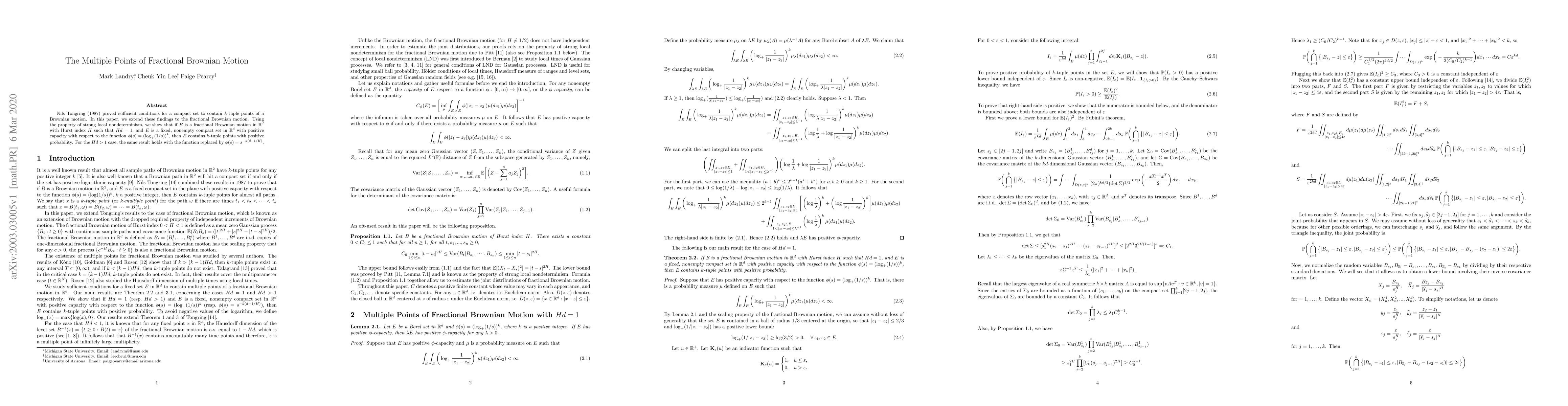 Nils Tongring (1987) proved sufficient conditions for a compact set to contain $k$-tuple points of a Brownian motion. In this paper, we extend these findings to the fractional Brownian motion. Using the property of strong local nondeterminism, we show that if $B$ is a fractional Brownian motion in $\mathbb{R}^d$ with Hurst index $H$ such that $Hd=1$, and $E$ is a fixed, nonempty compact set in $\mathbb{R}^d$ with positive capacity with respect to the function $\phi(s) = (\log_+(1/s))^k$, then $E$ contains $k$-tuple points with positive probability. For the $Hd > 1$ case, the same result holds with the function replaced by $\phi(s) = s^{-k(d-1/H)}$.