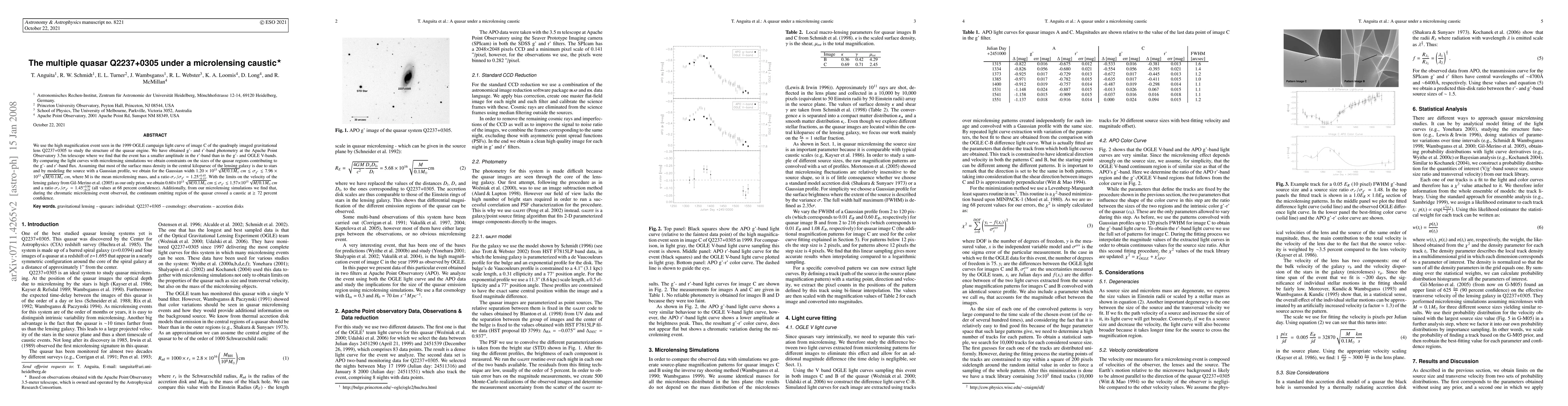We use the high magnification event seen in the 1999 OGLE campaign light curve of image C of the quadruply imaged gravitational lens Q2237+0305 to study the structure of the quasar engine. We have obtained g'- and r'-band photometry at the Apache Point Observatory 3.5m telescope where we find that the event has a smaller amplitude in the r'-band than in the g'- and OGLE V-bands. By comparing the light curves with microlensing simulations we obtain constraints on the sizes of the quasar regions contributing to the g'- and r'-band flux. Assuming that most of the surface mass density in the central kiloparsec of the lensing galaxy is due to stars and by modeling the source with a Gaussian profile, we obtain for the Gaussian width 1.20 x 10^15 sqrt(M/0.1M_sun)cm < sigma_g' < 7.96 x 10^15 sqrt(M/0.1Msun) cm, where M is the mean microlensing mass, and a ratio sigma_r'/sigma_g'=1.25^{+0.45}_{-0.15}. With the limits on the velocity of the lensing galaxy from Gil-Merino et al. (2005) as our only prior, we obtain 0.60 x 10^15 sqrt(M/0.1Msun) cm < sigma_g' < 1.57 x 10^15 sqrt(M/0.1Msun) cm and a ratio sigma_r'/sigma_g'=1.45^{+0.90}_{-0.25} (all values at 68 percent confidence). Additionally, from our microlensing simulations we find that, during the chromatic microlensing event observed, the continuum emitting region of the quasar crossed a caustic at >72 percent confidence.
