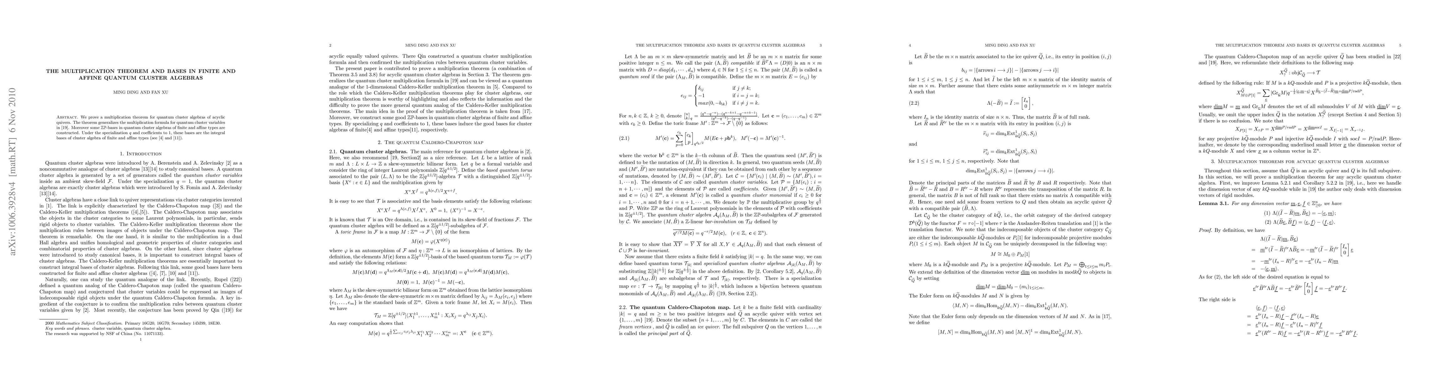 The paper proves a multiplication theorem for quantum cluster algebras of acyclic quivers, generalizing a prior formula, and constructs $\mathbb{ZP}$-bases for quantum cluster algebras in finite and affine types, which specialize to integral bases under specific conditions.