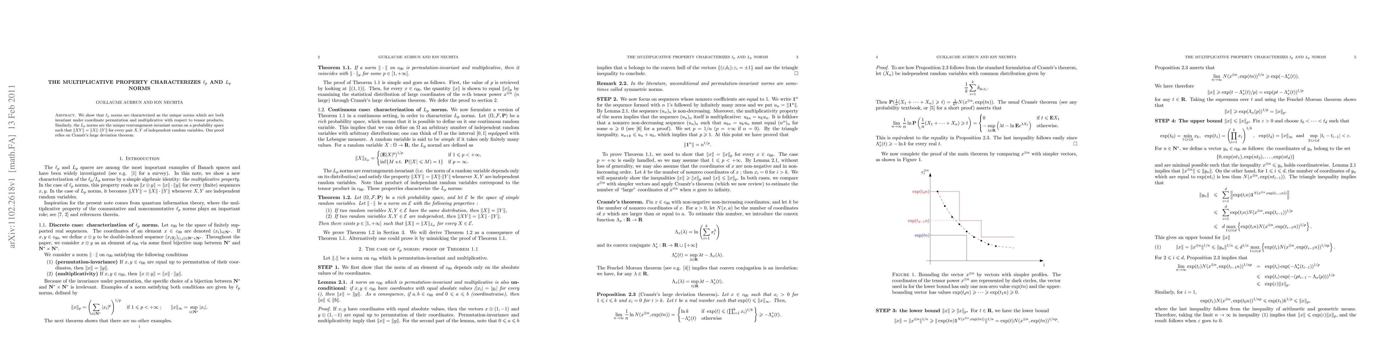 This paper demonstrates that $\ell_p$ norms are uniquely defined by their invariance under coordinate permutation and multiplicative property in tensor products, while $L_p$ norms are uniquely identified as rearrangement-invariant norms satisfying $\|XY\|=\|X\| \cdot \|Y\|$ for independent random variables, with proofs grounded in Cramér's large deviation theorem.