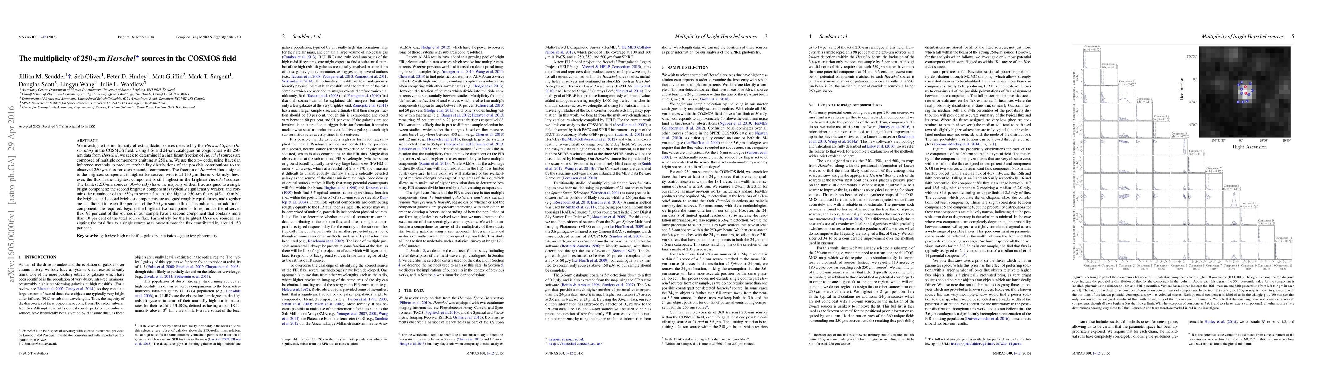 We investigate the multiplicity of extragalactic sources detected by the Herschel Space Observatory in the COSMOS field. Using 3.6- and 24-$\mu$m catalogues, in conjunction with 250-$\mu$m data from Herschel, we seek to determine if a significant fraction of Herschel sources are composed of multiple components emitting at 250 $\mu$m. We use the XID+ code, using Bayesian inference methods to produce probability distributions of the possible contributions to the observed 250-$\mu$m flux for each potential component. The fraction of Herschel flux assigned to the brightest component is highest for sources with total 250-$\mu$m fluxes < 45 mJy; however, the flux in the brightest component is still highest in the brightest Herschel sources. The faintest 250-$\mu$m sources (30-45 mJy) have the majority of their flux assigned to a single bright component; the second brightest component is typically significantly weaker, and contains the remainder of the 250-$\mu$m source flux. At the highest 250-$\mu$m fluxes (45-110 mJy), the brightest and second brightest components are assigned roughly equal fluxes, and together are insufficient to reach 100 per cent of the 250-$\mu$m source flux. This indicates that additional components are required, beyond the brightest two components, to reproduce the observed flux. 95 per cent of the sources in our sample have a second component that contains more than 10 per cent of the total source flux. Particularly for the brightest Herschel sources, assigning the total flux to a single source may overestimate the flux contributed by around 150 per cent.