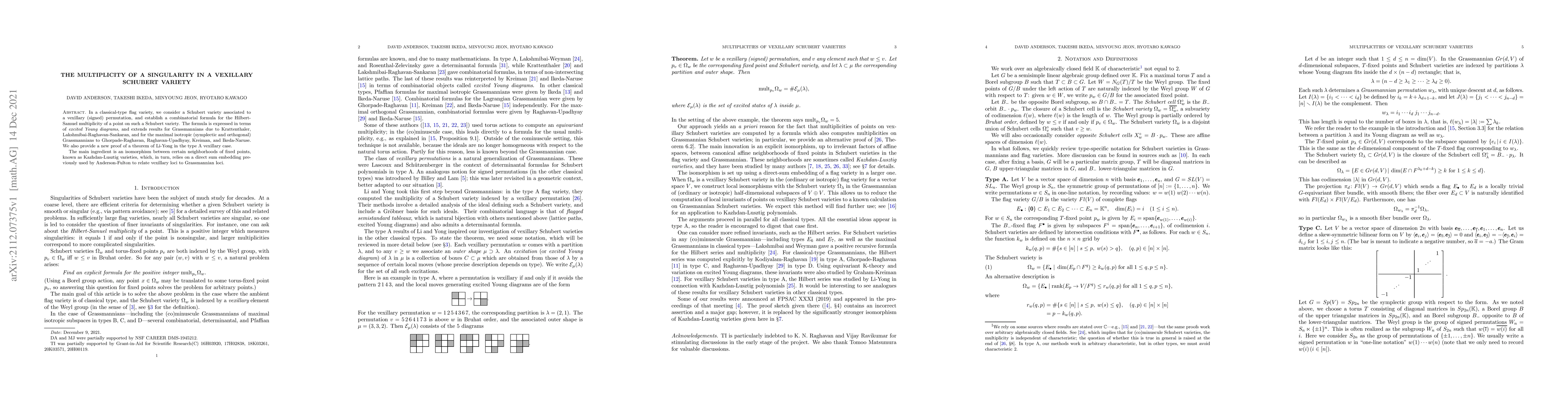 In a classical-type flag variety, we consider a Schubert variety associated to a vexillary (signed) permutation, and establish a combinatorial formula for the Hilbert-Samuel multiplicity of a point on such a Schubert variety. The formula is expressed in terms of excited Young diagrams, and extends results for Grassmannians due to Krattenthaler, Lakshmibai-Raghavan-Sankaran, and for the maximal isotropic (symplectic and orthogonal) Grassmannians to Ghorpade-Raghavan, Raghavan-Upadhyay, Kreiman, and Ikeda-Naruse. We also provide a new proof of a theorem of Li-Yong in the type A vexillary case. The main ingredient is an isomorphism between certain neighborhoods of fixed points, known as Kazhdan-Lusztig varieties, which, in turn, relies on a direct sum embedding previously used by Anderson-Fulton to relate vexillary loci to Grassmannian loci.