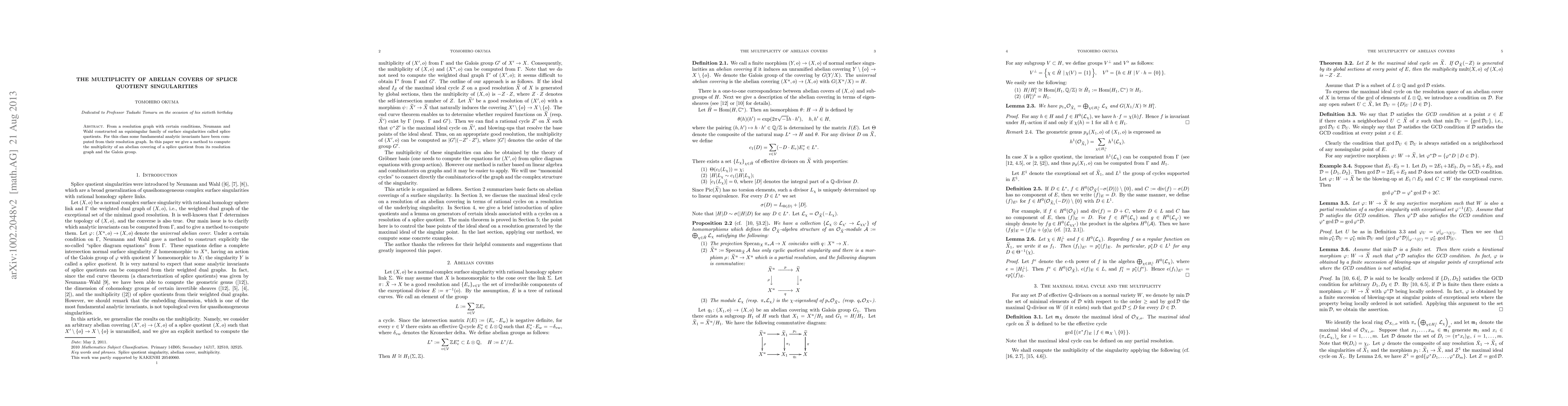 This paper presents a method to determine the multiplicity of abelian covers of splice quotient singularities using their resolution graphs and associated Galois groups. The authors extend previous analytic invariant computations for these singularities.