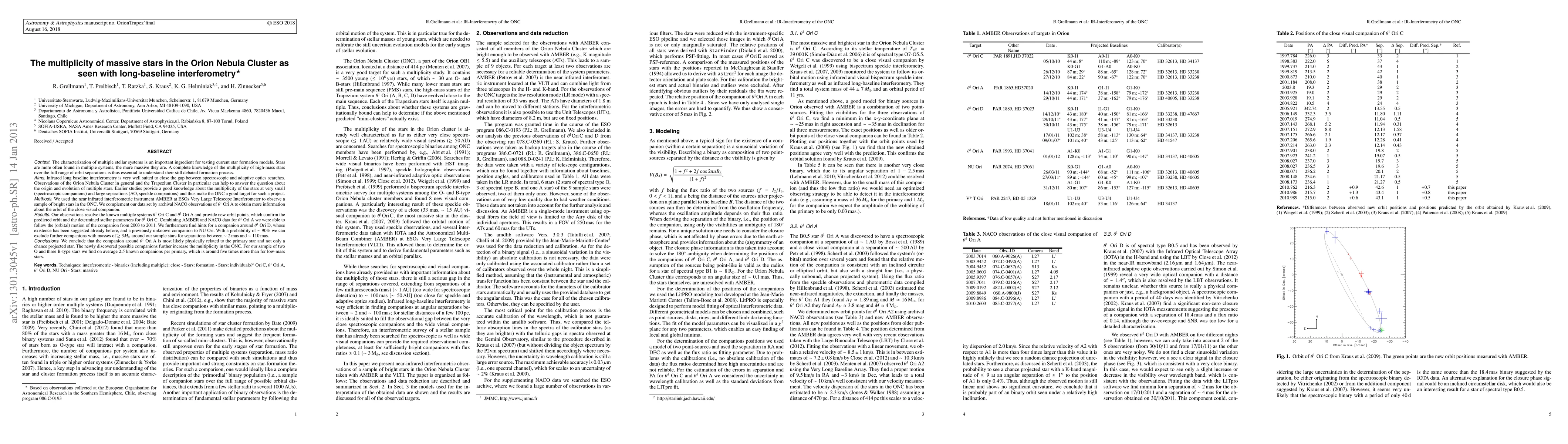 A study using long-baseline interferometry reveals that massive stars in the Orion Nebula Cluster have a high multiplicity rate, with an average of 2.5 known companions per primary star, significantly higher than for low-mass stars.