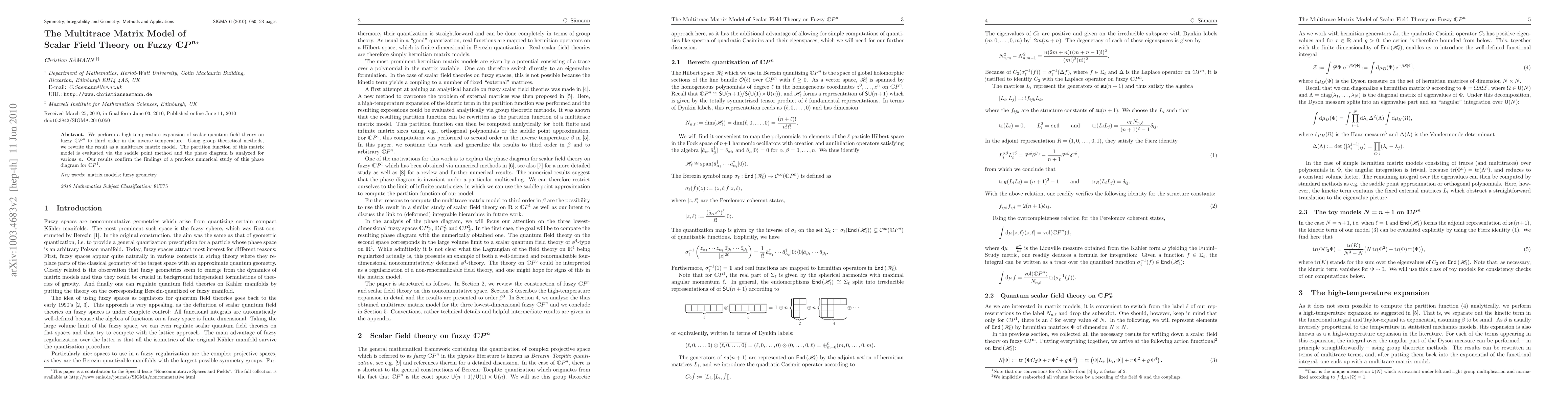 This paper expands scalar quantum field theory on fuzzy CP^n to third order in inverse temperature, reformulating it as a multitrace matrix model using group theory. The partition function is evaluated via the saddle point method, confirming the phase diagram previously found for CP^1.
