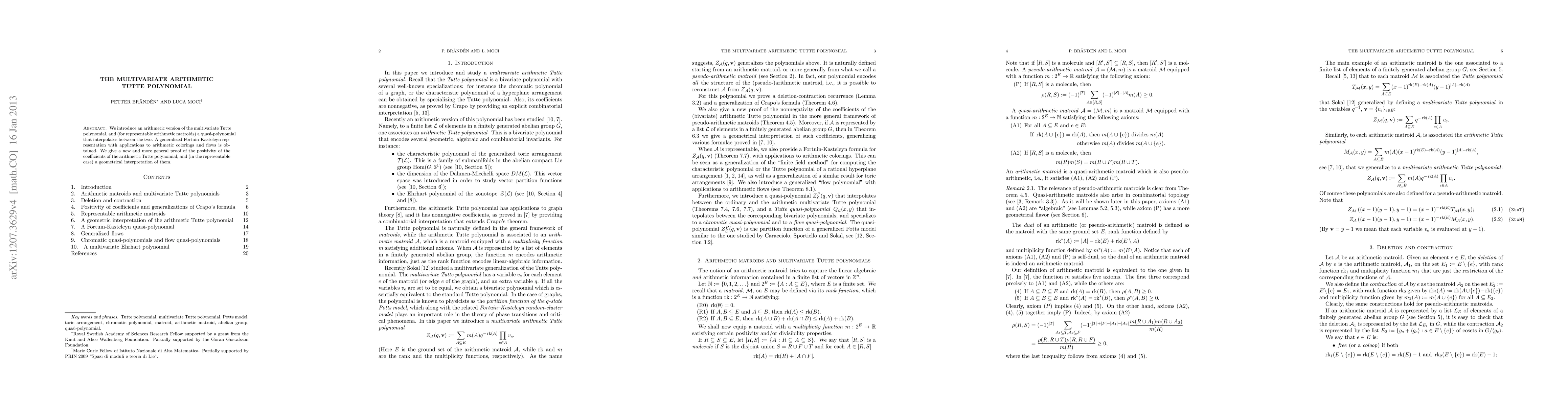 We introduce an arithmetic version of the multivariate Tutte polynomial, and (for representable arithmetic matroids) a quasi-polynomial that interpolates between the two. A generalized Fortuin-Kasteleyn representation with applications to arithmetic colorings and flows is obtained. We give a new and more general proof of the positivity of the coefficients of the arithmetic Tutte polynomial, and (in the representable case) a geometrical interpretation of them.