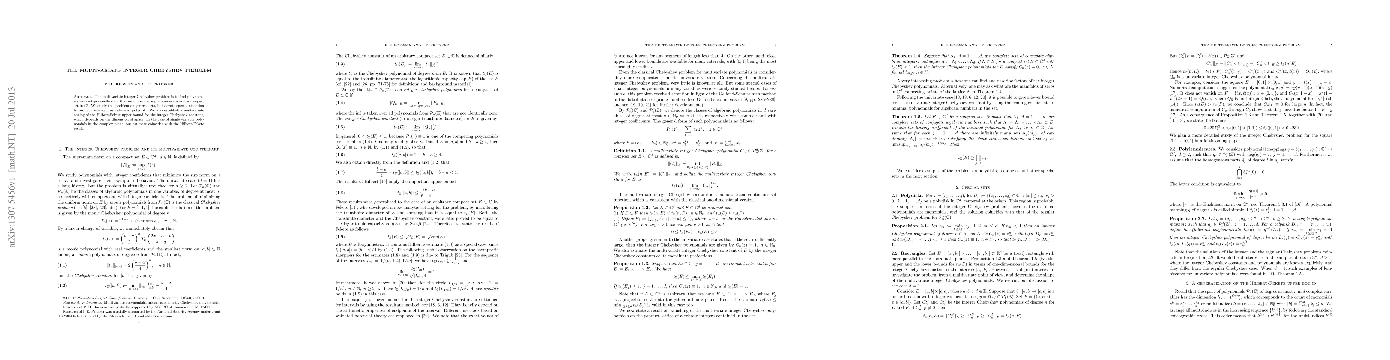 This paper investigates polynomials with integer coefficients that minimize the supremum norm over compact sets in complex space, focusing on product sets like cubes and polydisks, and establishes a multivariate analog of the Hilbert-Fekete upper bound for the integer Chebyshev constant.