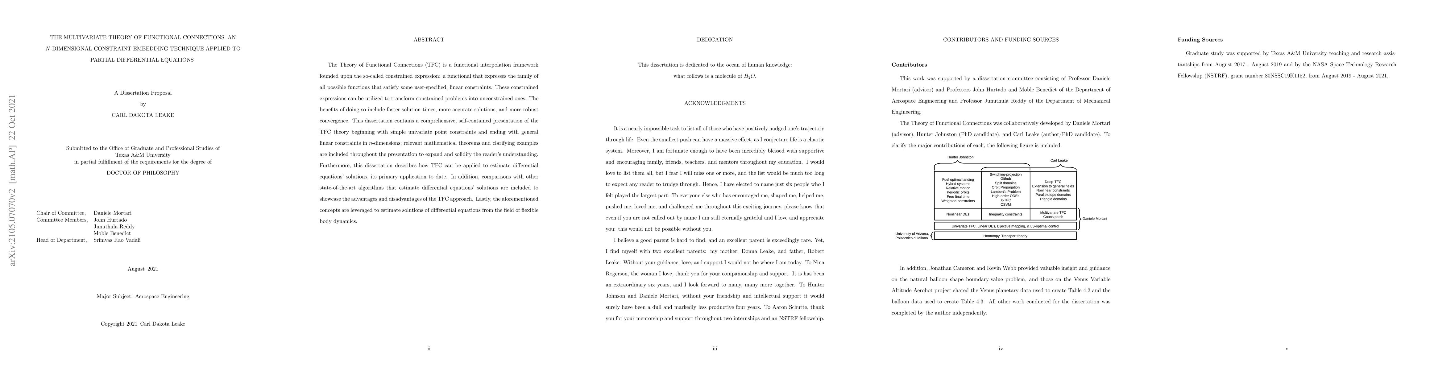 This paper presents the Theory of Functional Connections (TFC), a framework for functional interpolation that transforms constrained problems into unconstrained ones, leading to faster, more accurate, and more robust solutions. It explores the application of TFC to solve partial differential equations, comparing its effectiveness with other algorithms and demonstrating its utility in flexible body dynamics.