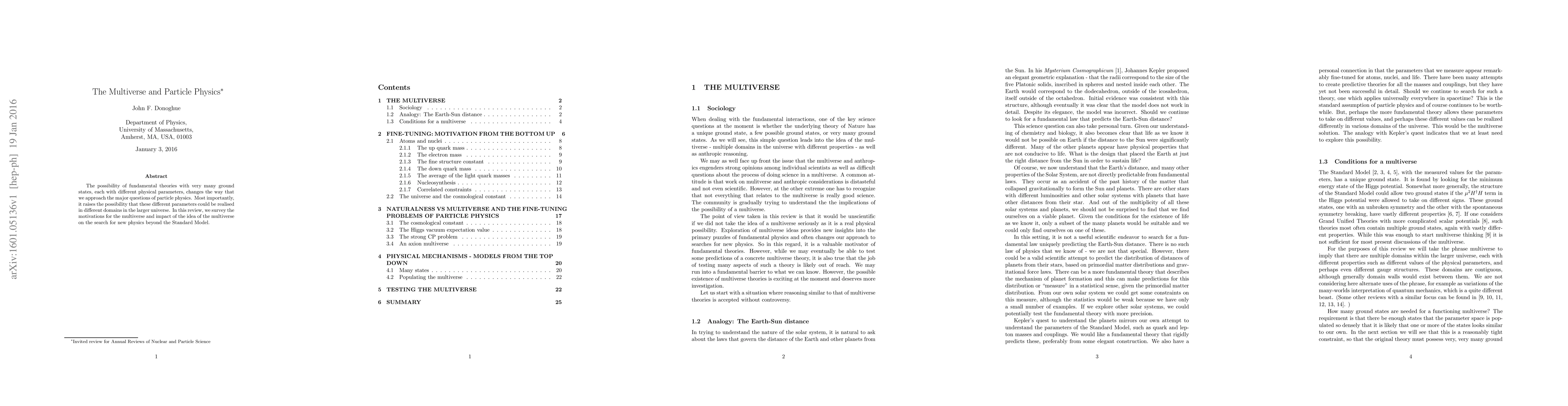 This paper explores the implications of a multiverse with numerous ground states, each having distinct physical parameters, on particle physics. It reviews the motivations for the multiverse concept and its influence on the quest for physics beyond the Standard Model.