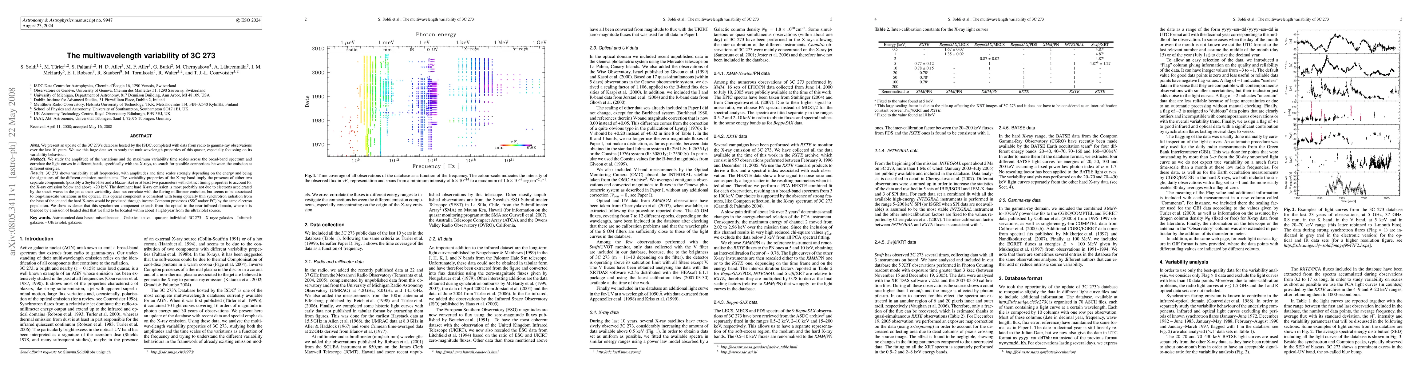 This paper updates 3C 273's multiwavelength variability database, analyzing data from radio to gamma-ray over the past decade. It finds significant variability across all frequencies, suggesting distinct emission mechanisms, with hard X-ray emission likely produced by inverse Compton processes rather than shock-accelerated electrons.
