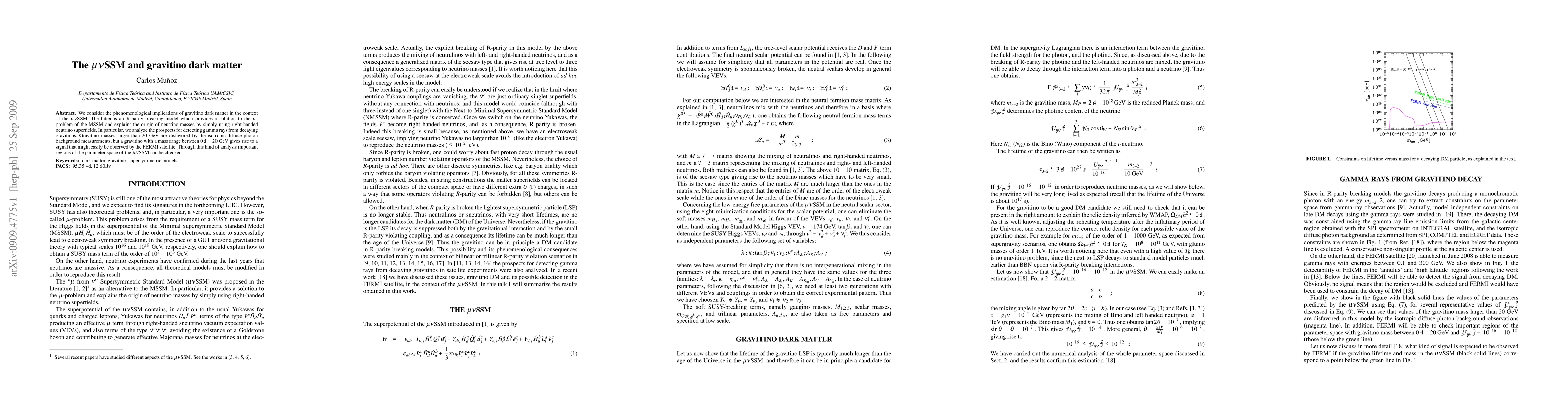 This work stands out by combining the $\mu\nu$SSM, which addresses both the $\mu$-problem and neutrino masses, with the exploration of gravitino dark matter and its potential observability through gamma-ray signals from the FERMI satellite.