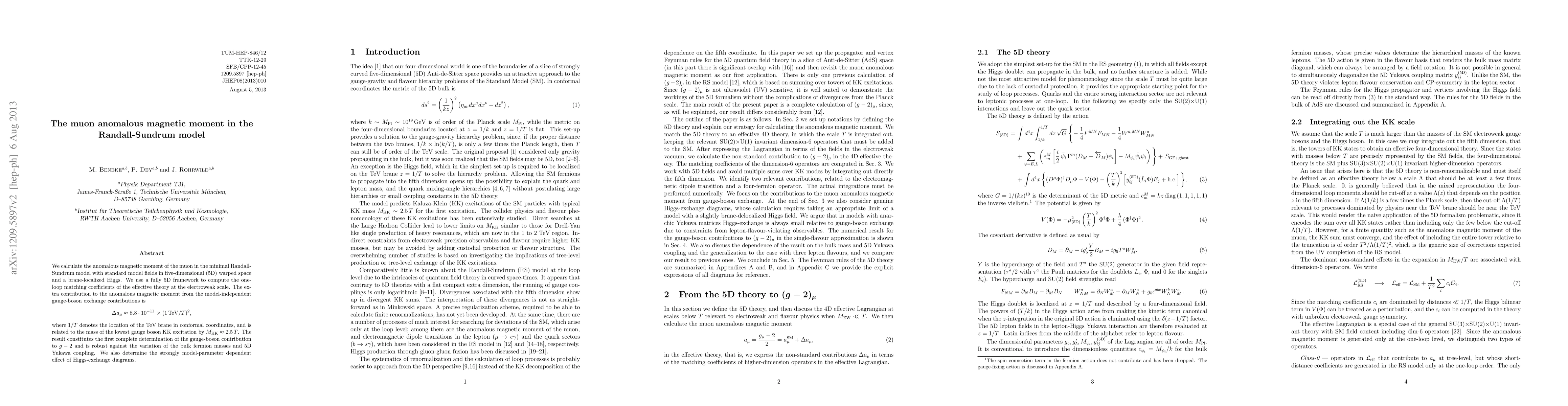 This paper calculates the muon anomalous magnetic moment in the Randall-Sundrum model, finding an extra contribution of approximately 8.8*10^-11 from gauge-boson exchange, which is robust against variations in bulk fermion masses and 5D coupling. It also examines the model-dependent effects of Higgs-exchange diagrams.