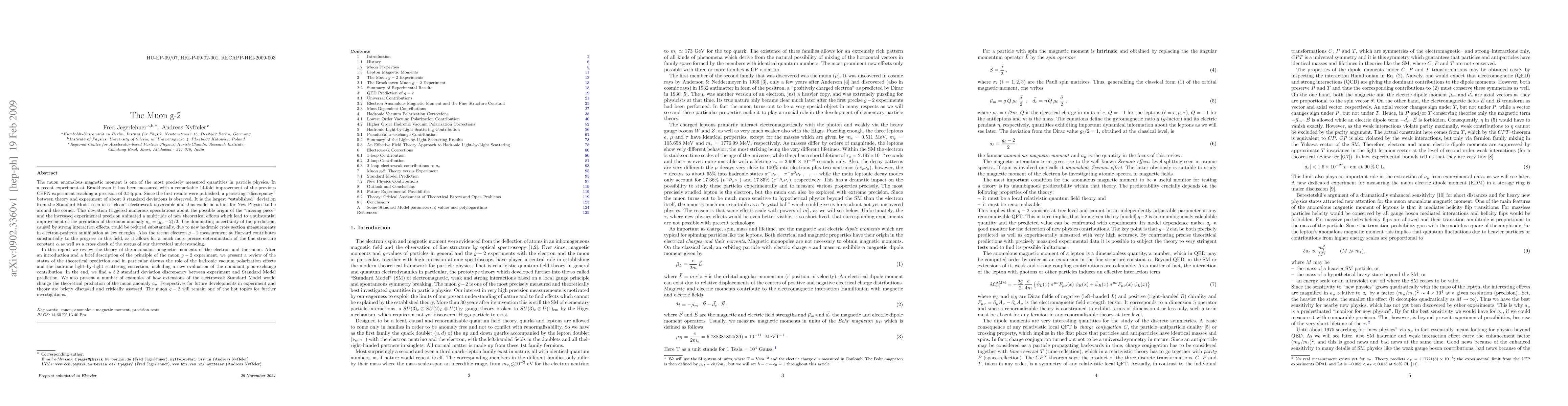 The muon anomalous magnetic moment is one of the most precisely measured quantities in particle physics. In a recent experiment at Brookhaven it has been measured with a remarkable 14-fold improvement of the previous CERN experiment reaching a precision of 0.54ppm. Since the first results were published, a persisting "discrepancy" between theory and experiment of about 3 standard deviations is observed. It is the largest "established" deviation from the Standard Model seen in a "clean" electroweak observable and thus could be a hint for New Physics to be around the corner. This deviation triggered numerous speculations about the possible origin of the "missing piece" and the increased experimental precision animated a multitude of new theoretical efforts which lead to a substantial improvement of the prediction of the muon anomaly a_mu=(g_mu-2)/2. The dominating uncertainty of the prediction, caused by strong interaction effects, could be reduced substantially, due to new hadronic cross section measurements in electron-positron annihilation at low energies. Also the recent electron g-2 measurement at Harvard contributes substantially to the progress in this field, as it allows for a much more precise determination of the fine structure constant alpha as well as a cross check of the status of our theoretical understanding.