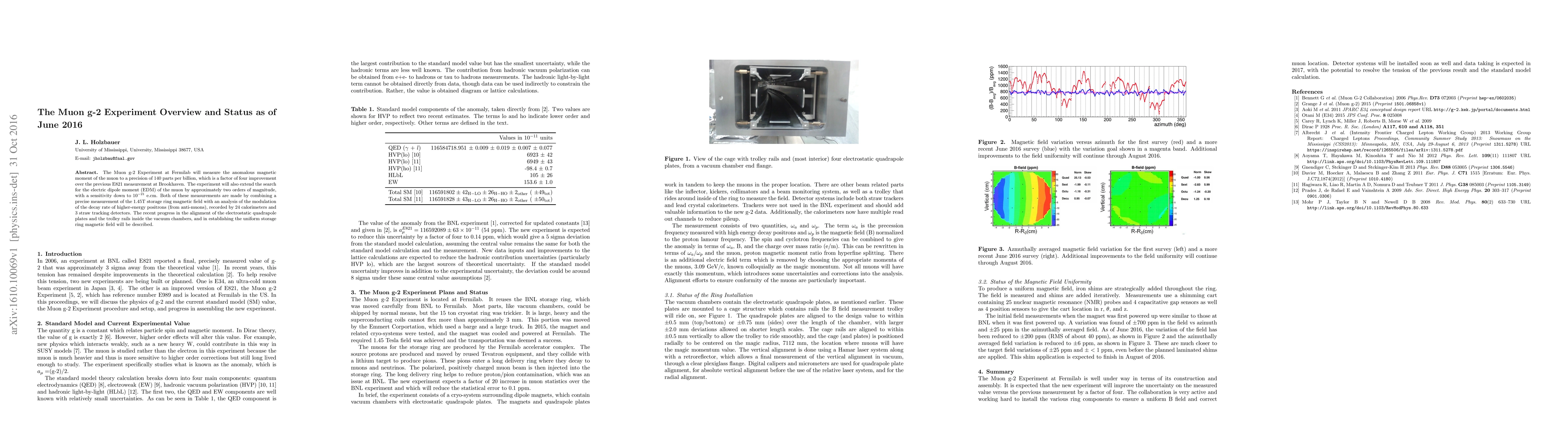 The Muon g-2 Experiment at Fermilab will measure the anomalous magnetic moment of the muon to a precision of 140 parts per billion, which is a factor of four improvement over the previous E821 measurement at Brookhaven. The experiment will also extend the search for the electric dipole moment (EDM) of the muon by approximately two orders of magnitude, with a sensitivity down to $10^{-21}$ e.cm. Both of these measurements are made by combining a precise measurement of the 1.45T storage ring magnetic field with an analysis of the modulation of the decay rate of higher-energy positrons (from anti-muons), recorded by 24 calorimeters and 3 straw tracking detectors. The recent progress in the alignment of the electrostatic quadrapole plates and the trolley rails inside the vacuum chambers, and in establishing the uniform storage ring magnetic field will be described.