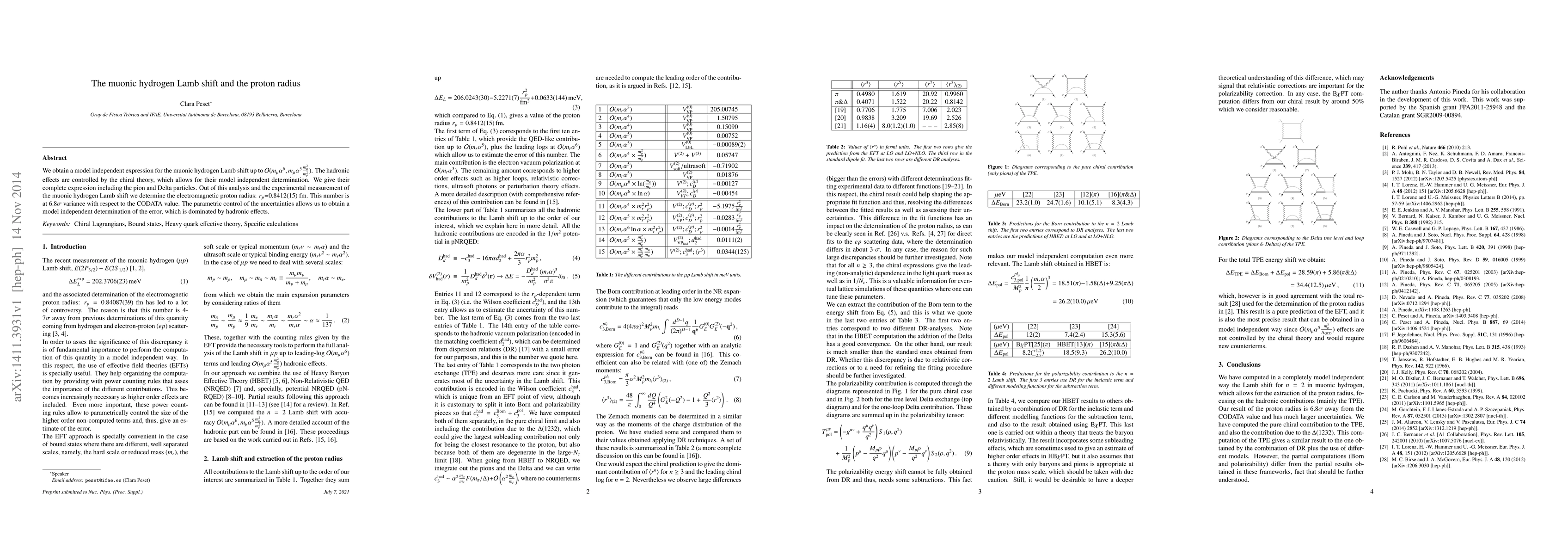This paper derives a model-independent expression for the muonic hydrogen Lamb shift, incorporating hadronic effects via chiral theory. The analysis leads to a proton radius determination of $r_p$=0.8412(15) fm, which significantly deviates from the CODATA value by 6.8$\sigma$.