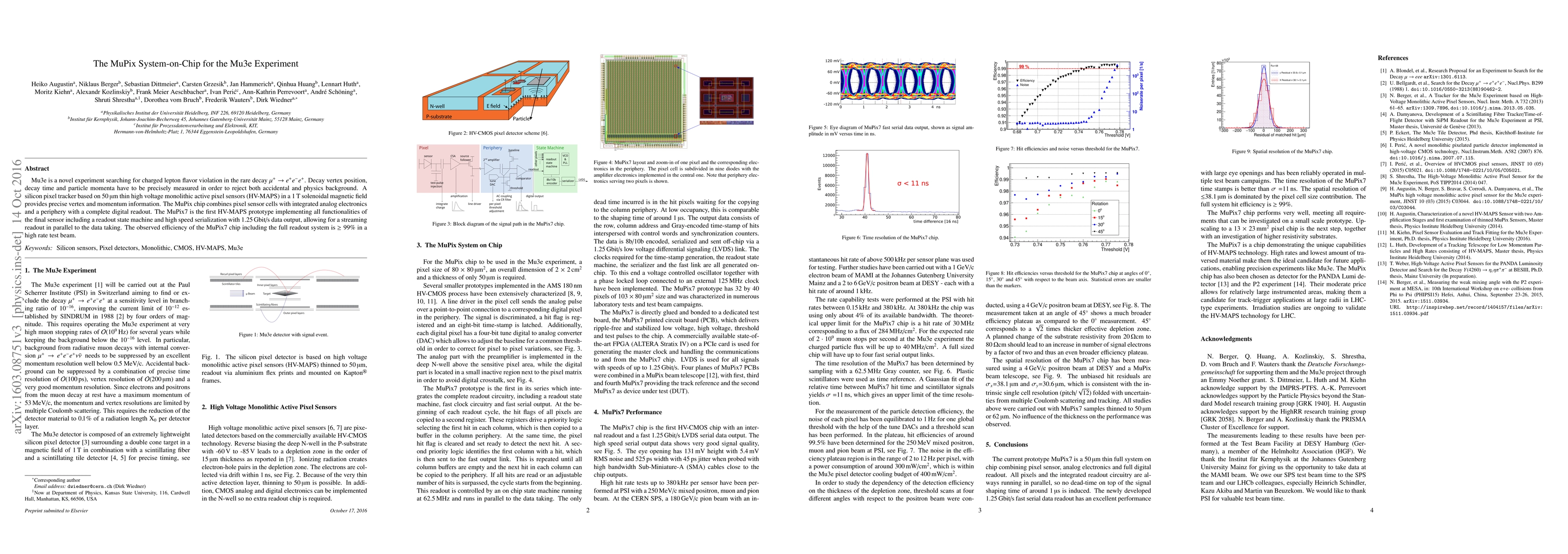 The MuPix System-on-Chip is designed for the Mu3e experiment to detect charged lepton flavor violation through precise measurements of decay vertex, time, and momenta. The MuPix7 chip integrates pixel sensors with analog electronics and a digital readout, achieving an efficiency of ≥99% in high-rate tests.